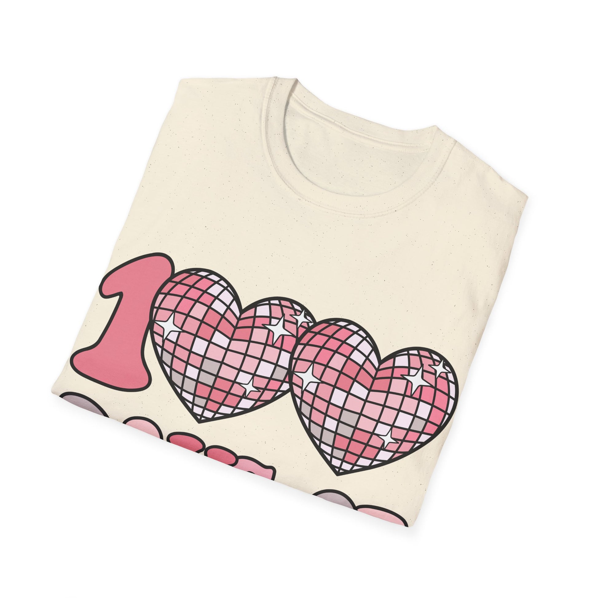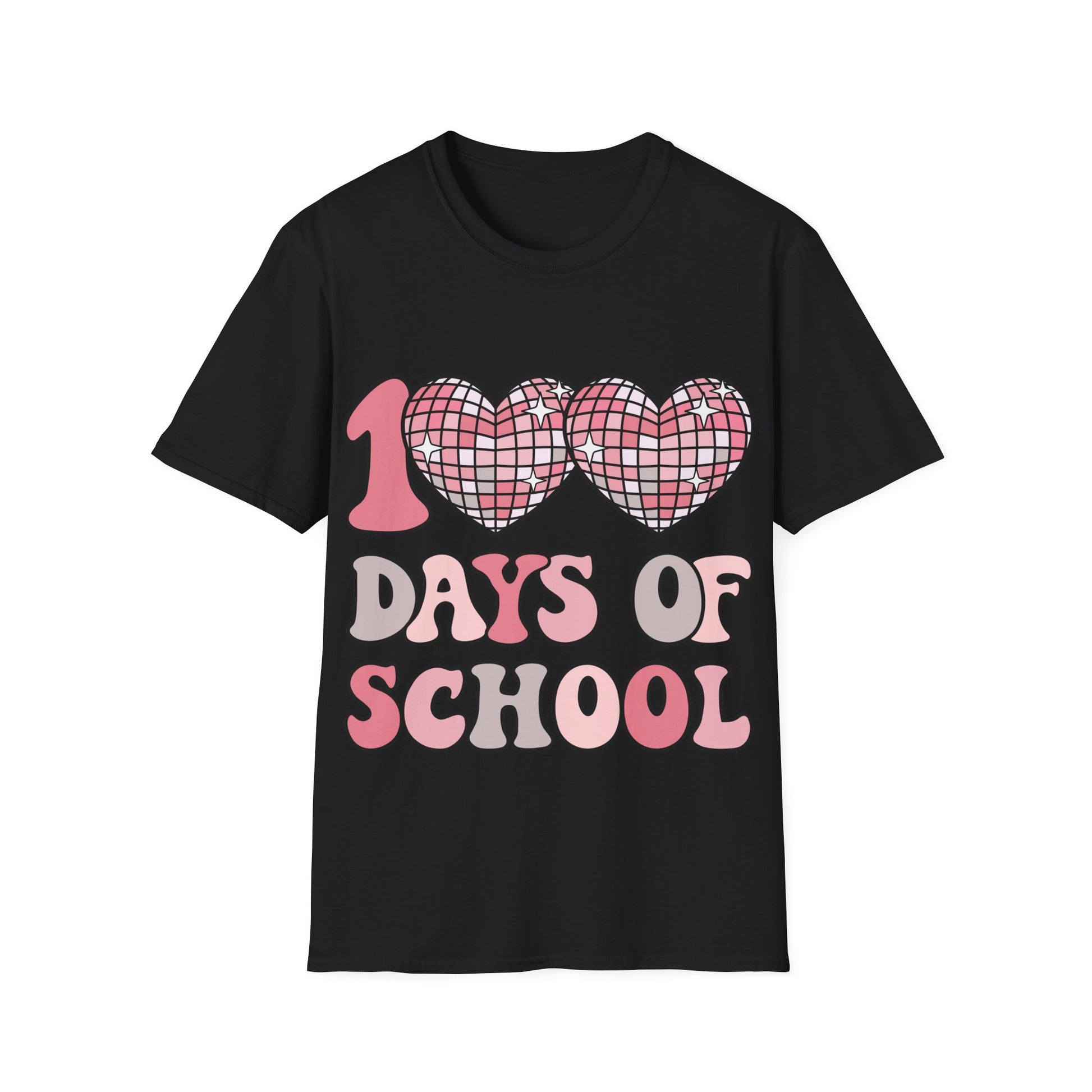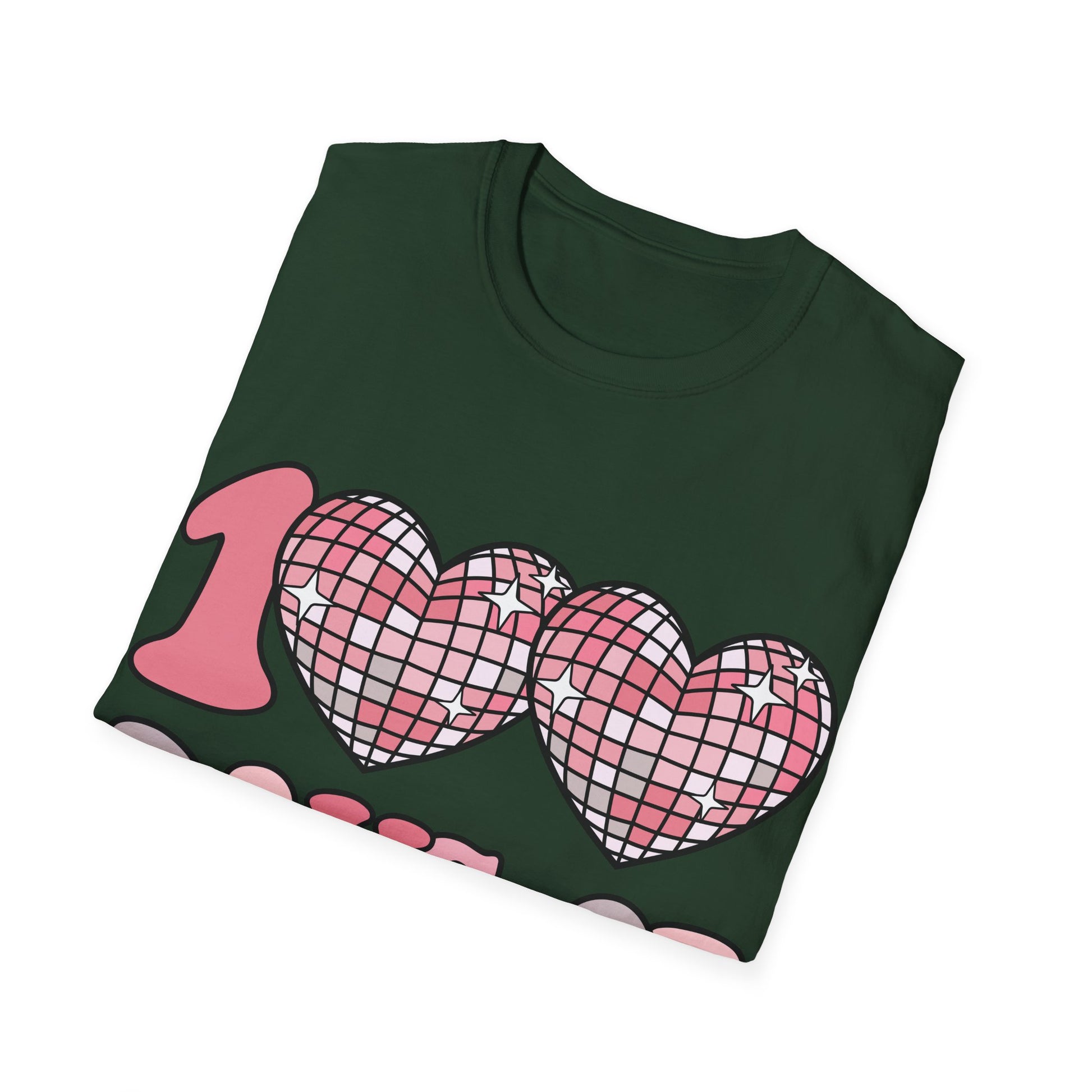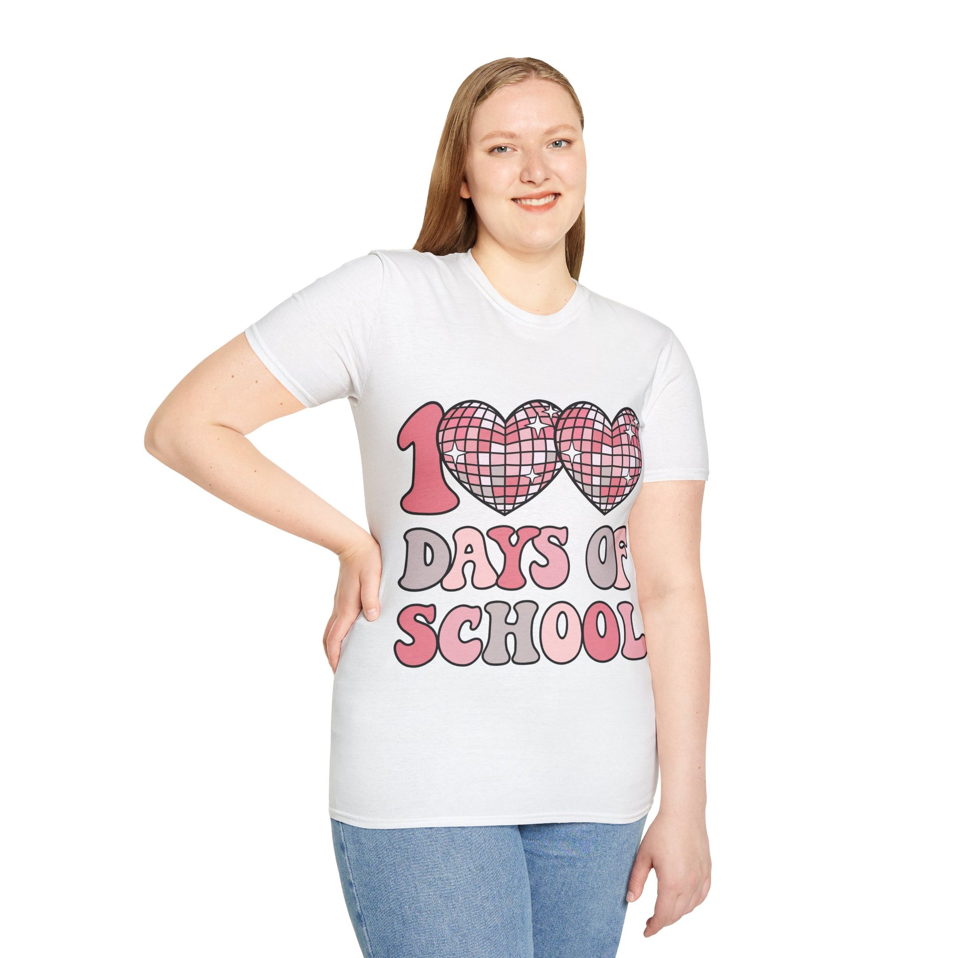 00 Days of School Shirt | Retro Pink Disco Hearts Tee | Vintage Bubble Letter Teacher & Student Top | Soft Ring-Spun Cotton Gift