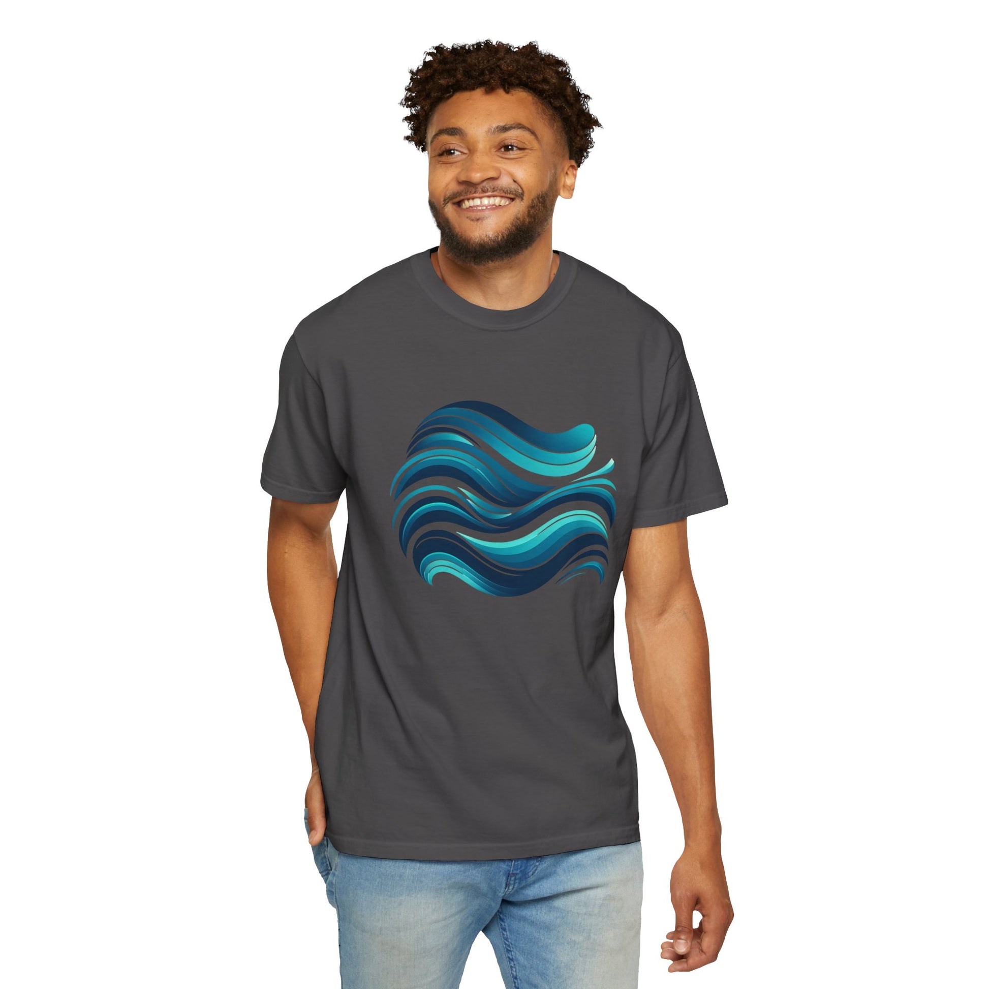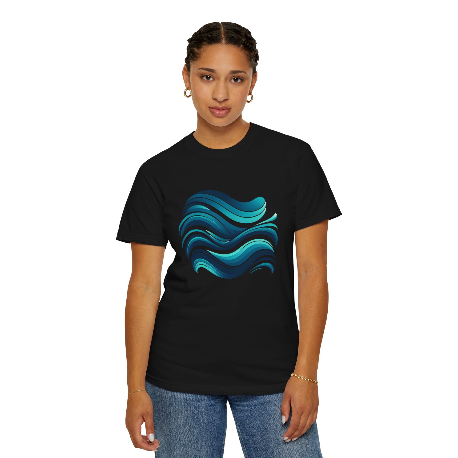 Abstract Ocean Wave T-Shirt Modern Aqua Design Artistic Sea Wave