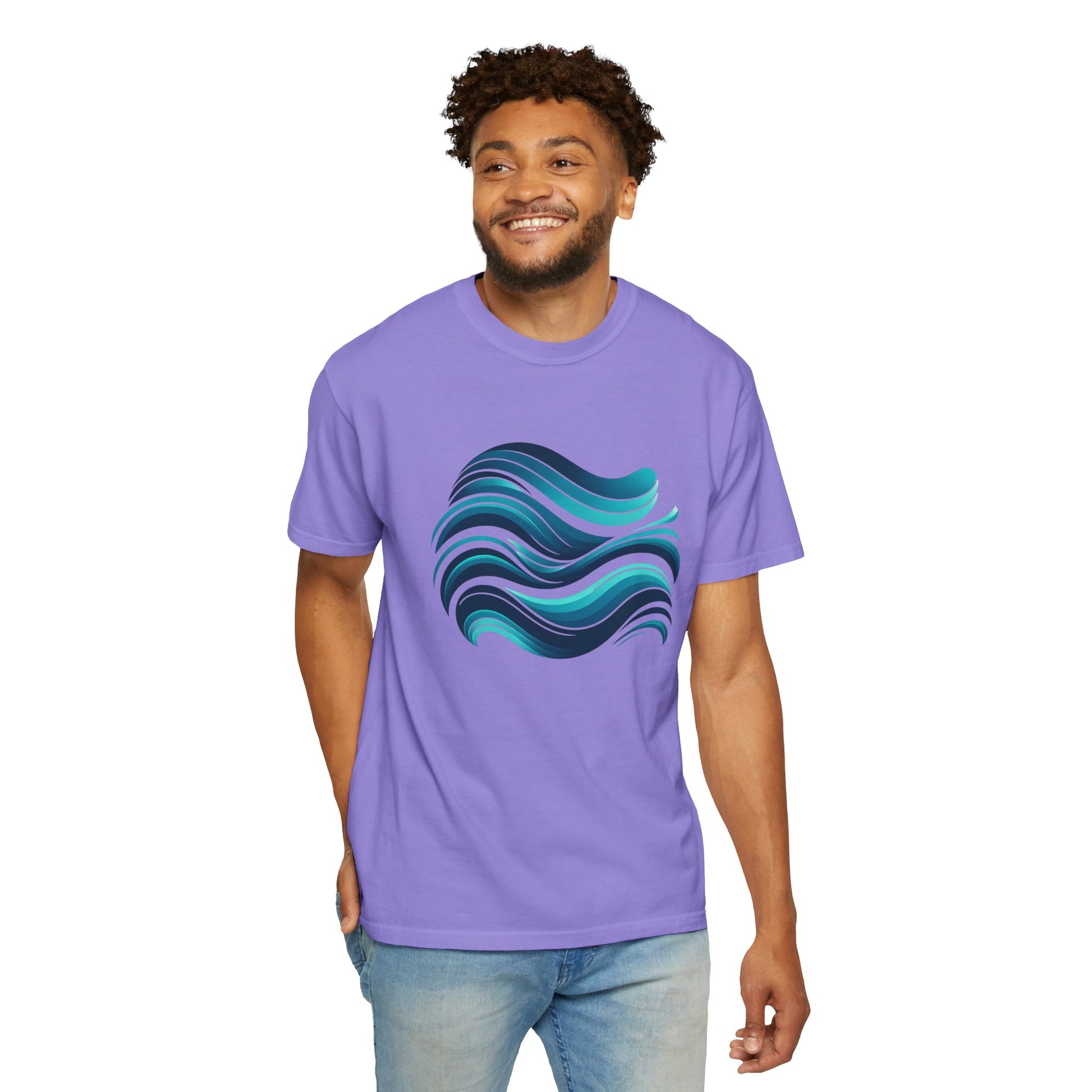 This T-shirt is a beautiful way to carry the calmness of the ocean with you throughout your day. It’s a statement piece for those who connect with the deep blues of the sea and the free-form expressions of abstract art.