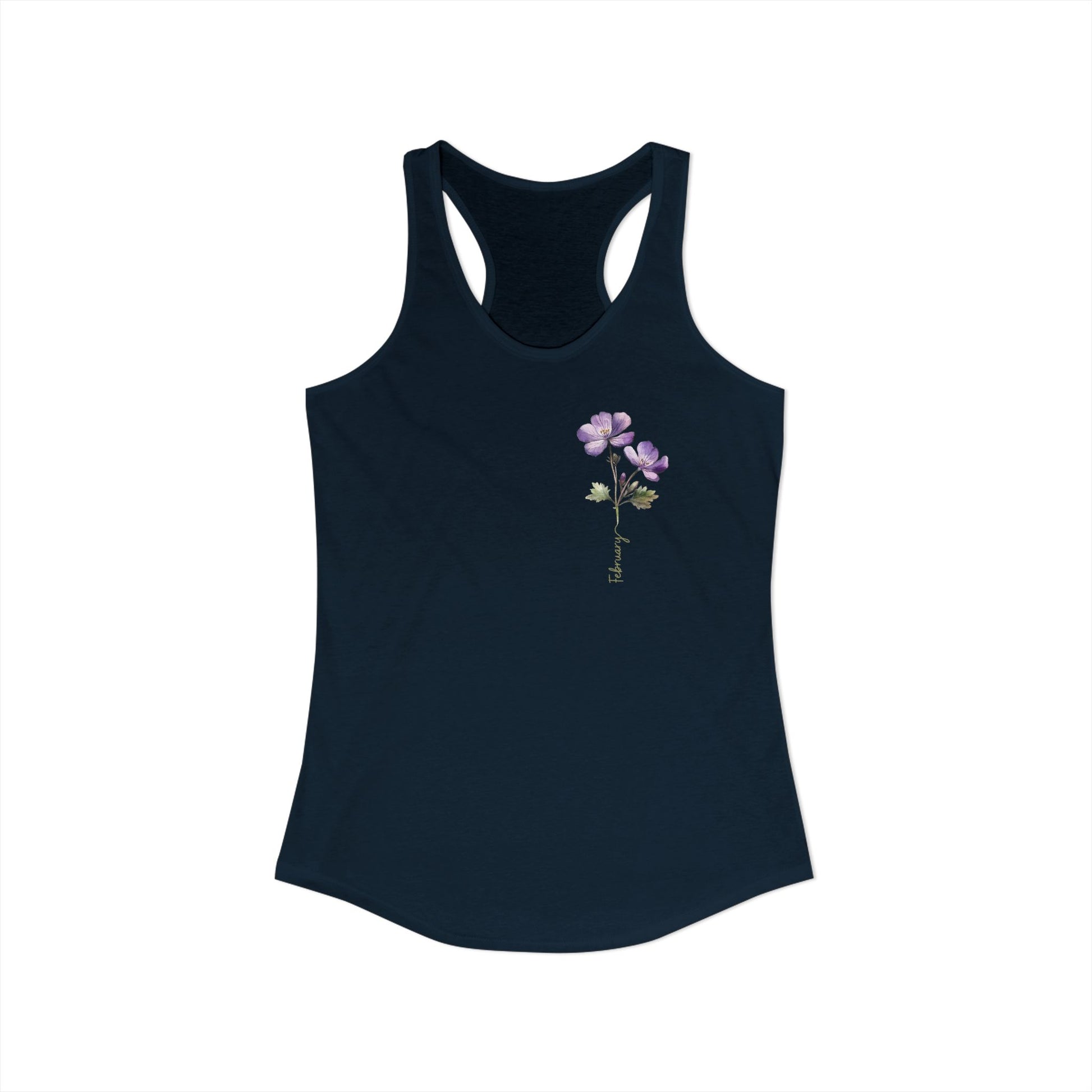 February Birth Flower Racerback – Minimal Violet Blossom Tank for Elegant Zodiac Queens