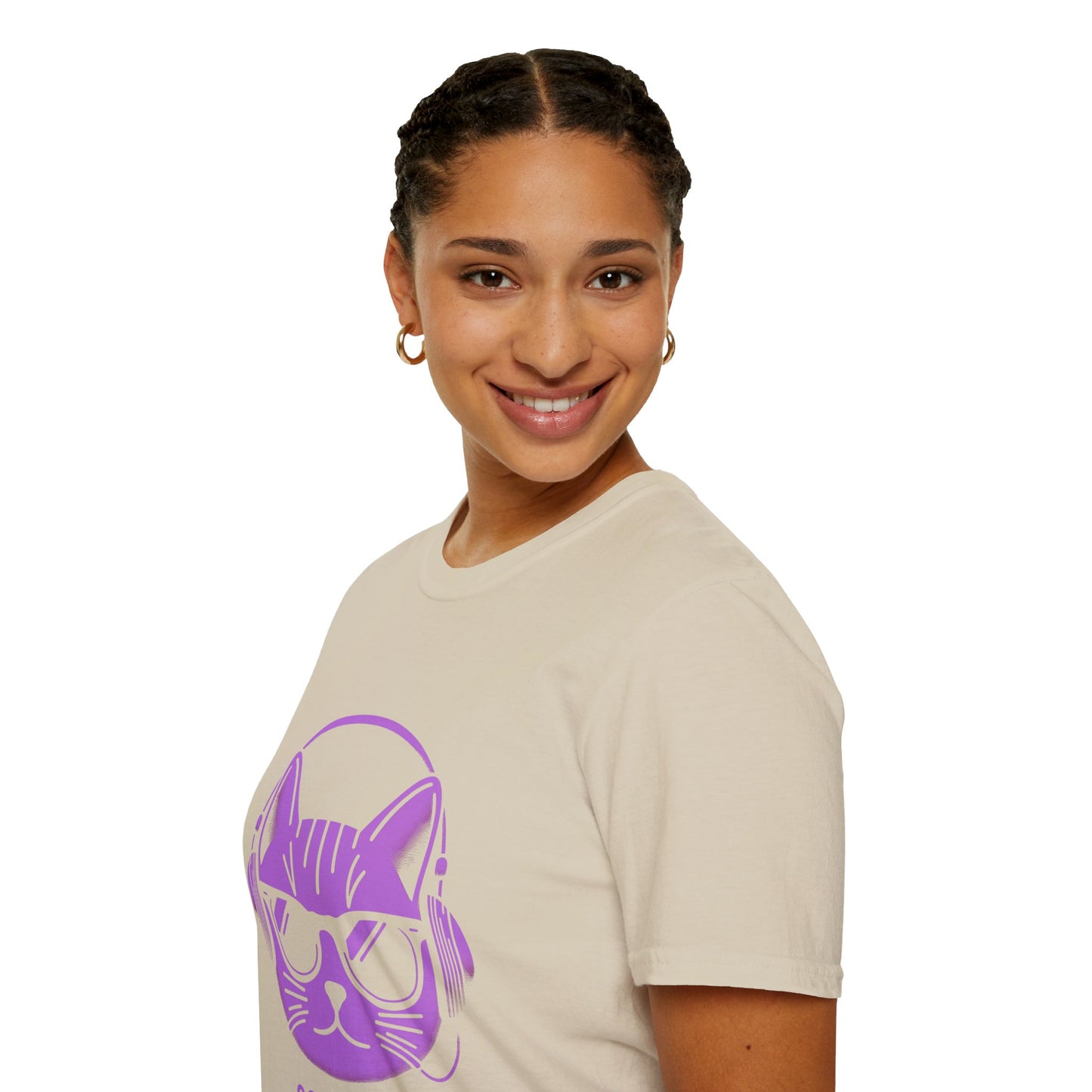 Cool Cat - Halloween Cat with Headphones Unisex Softstyle T-Shirt