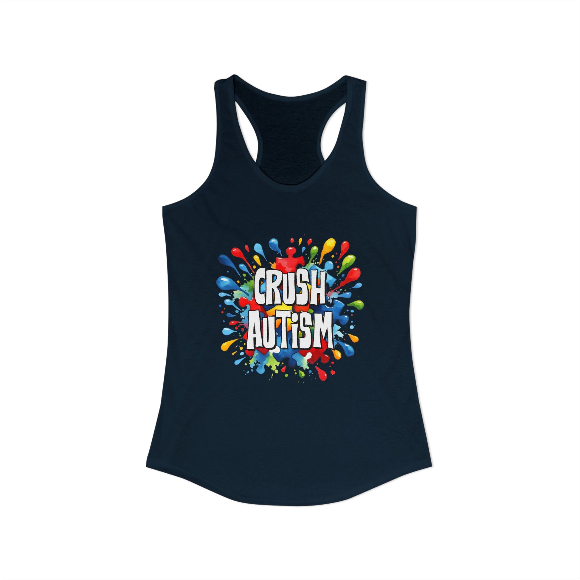 Crush Autism Barriers – Bold Rainbow Splatter Autism Awareness Racerback Tank
