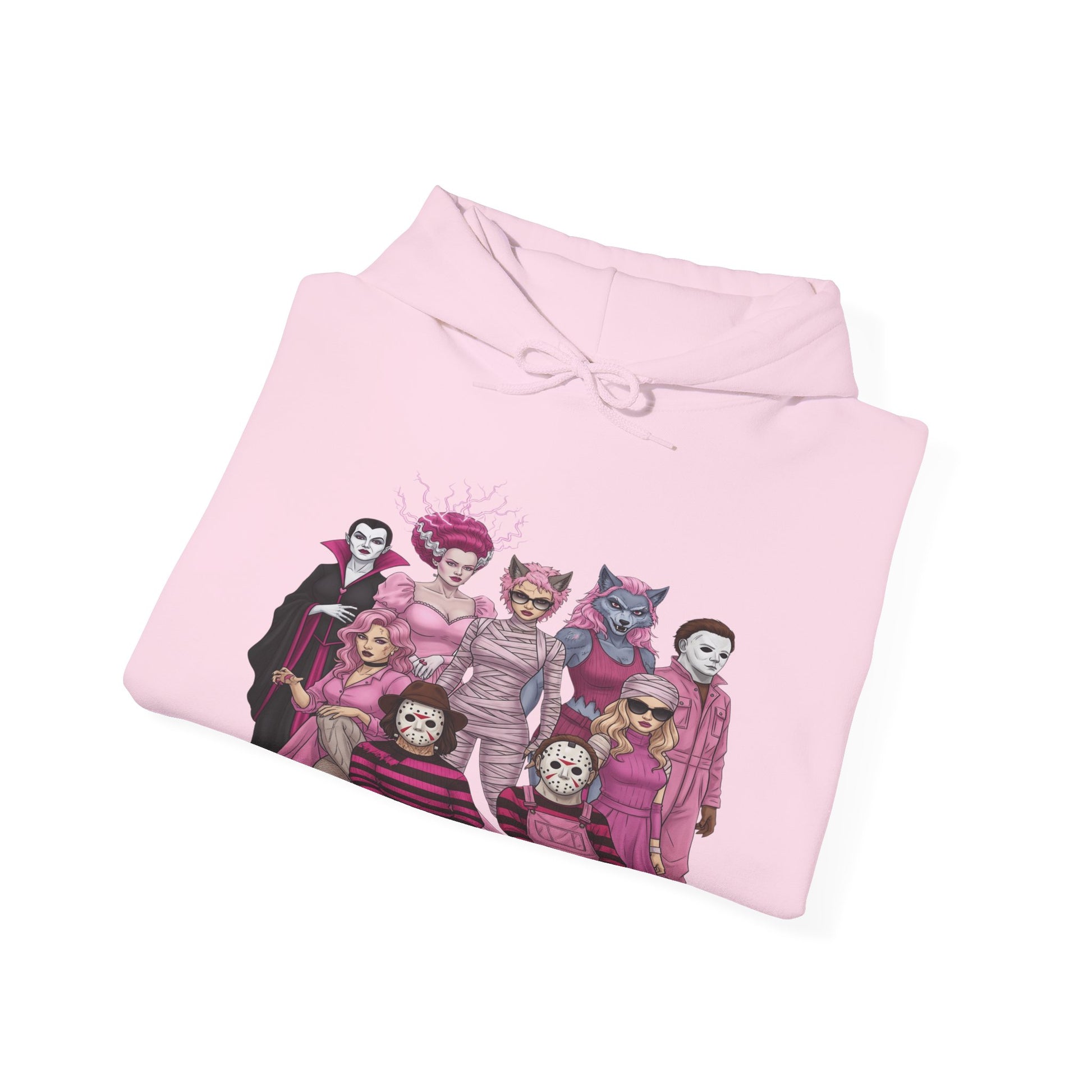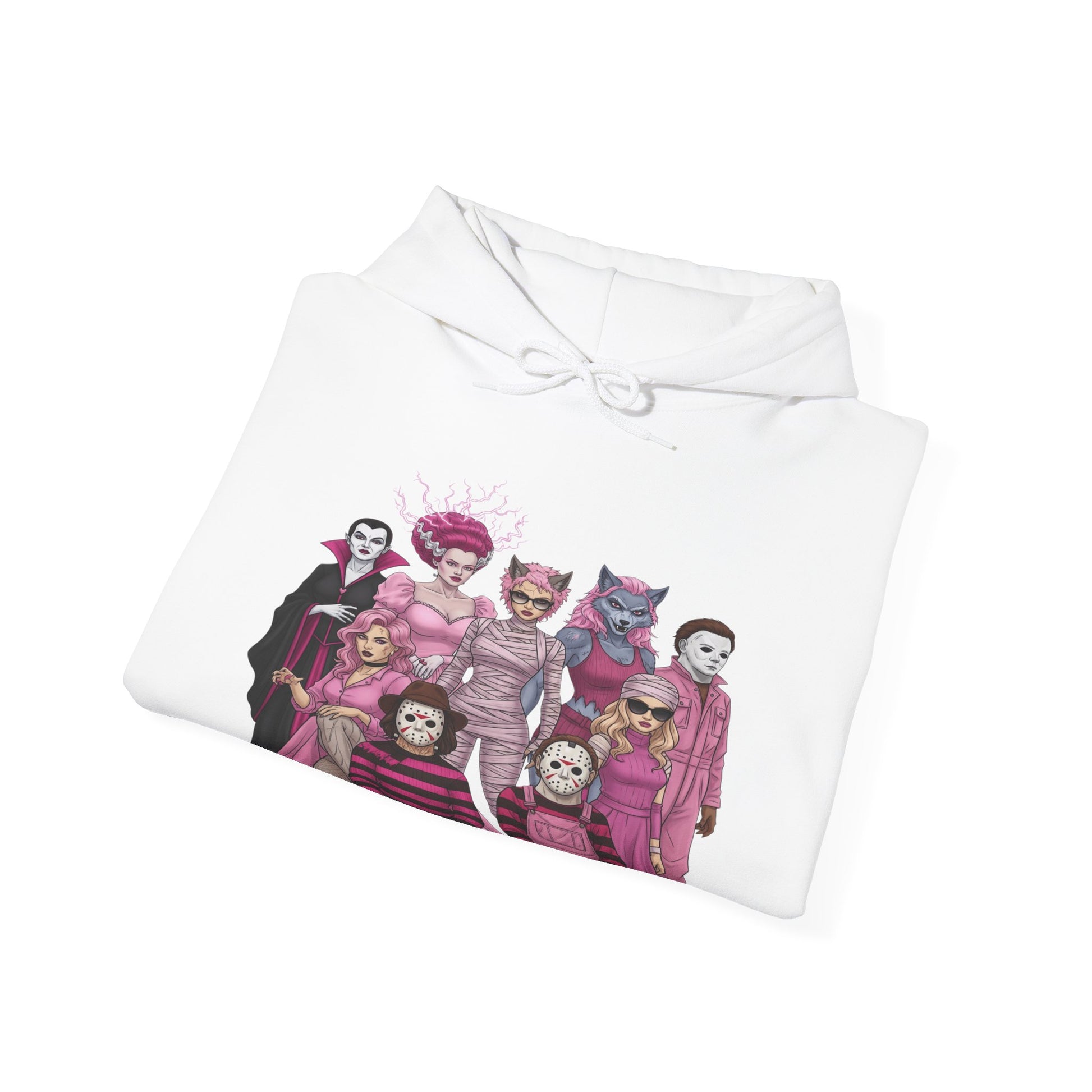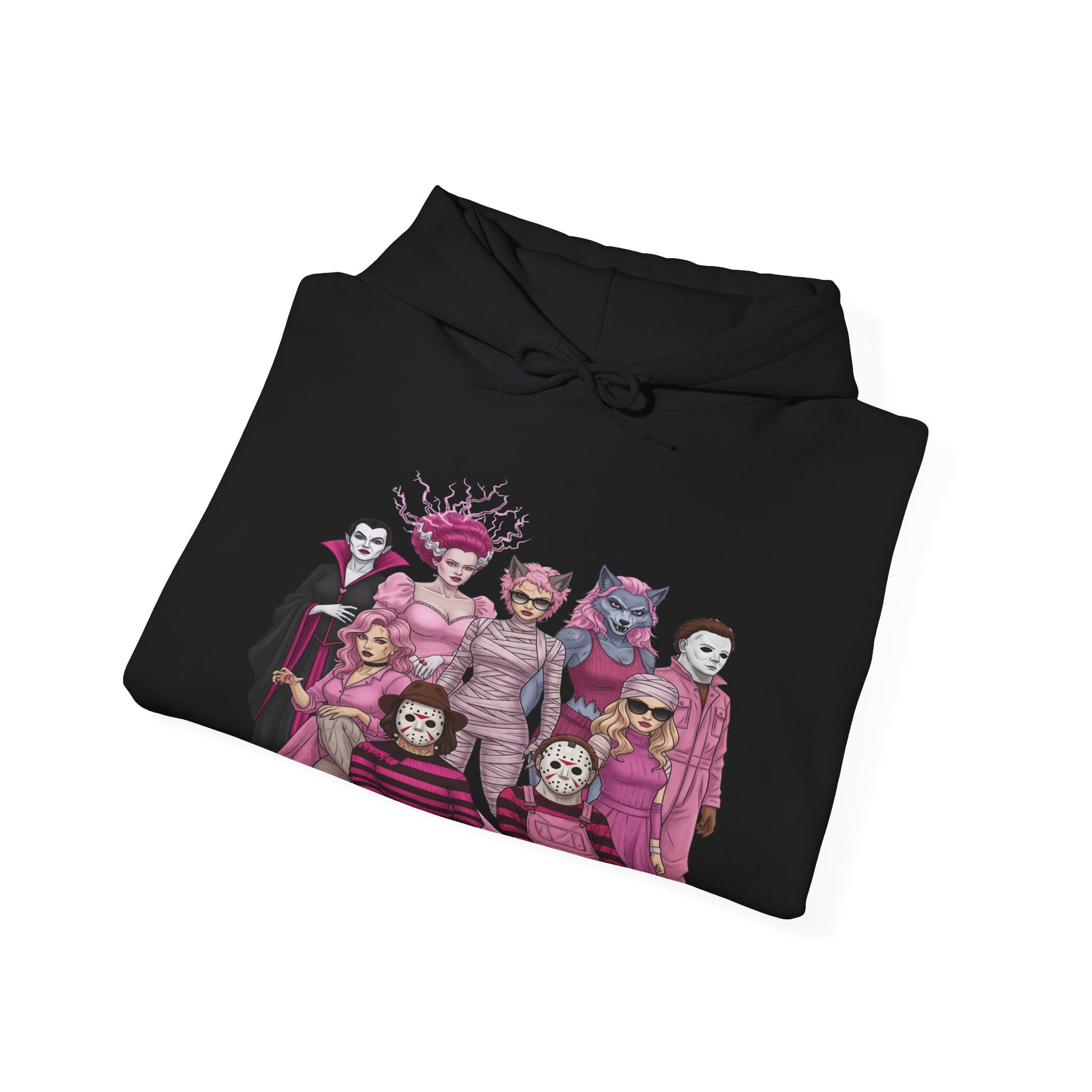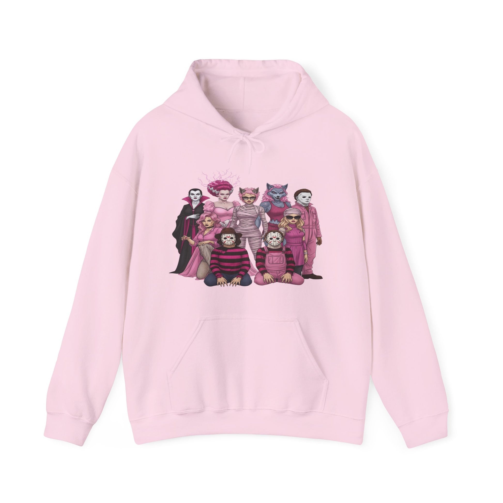 This design is drenched in shades of pink for a very important reason. October is not only the month of Halloween, but also Breast Cancer Awareness Month. The vibrant pink palette is our tribute to the fierce spirit of the fighters, survivors, and loved ones in that battle. Each hoodie stands as a symbol of solidarity, weaving together fantasy horror with real-world strength.