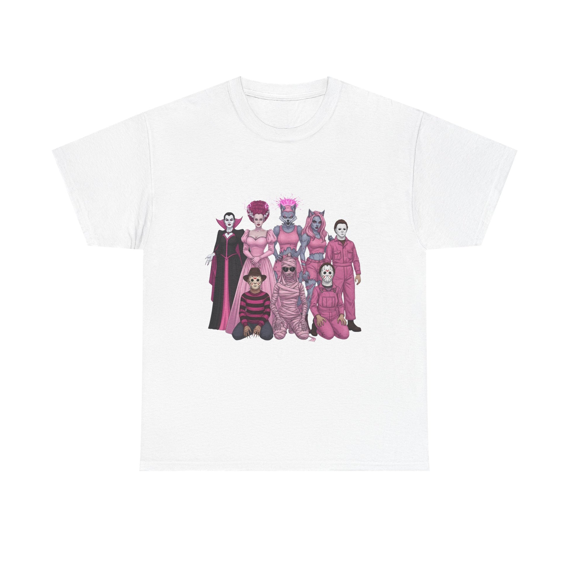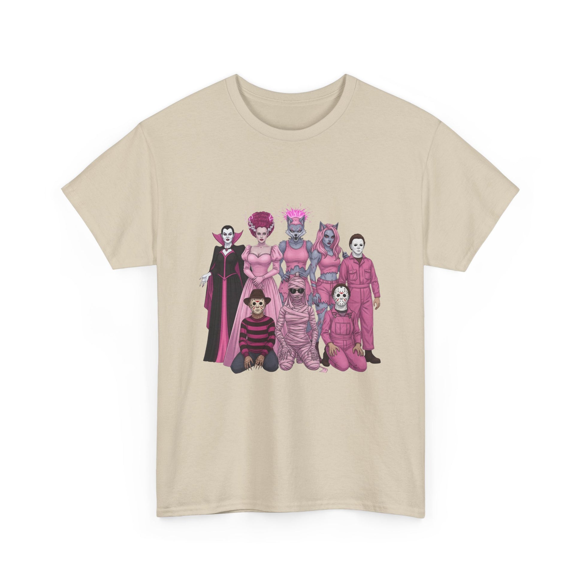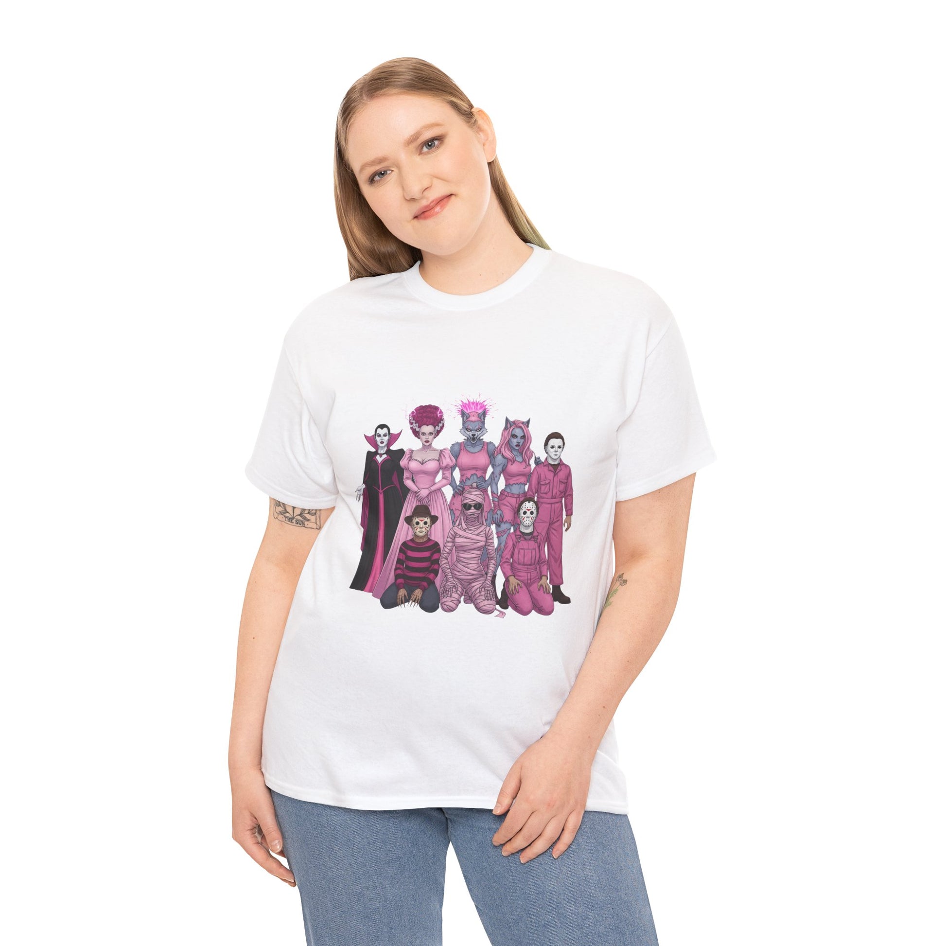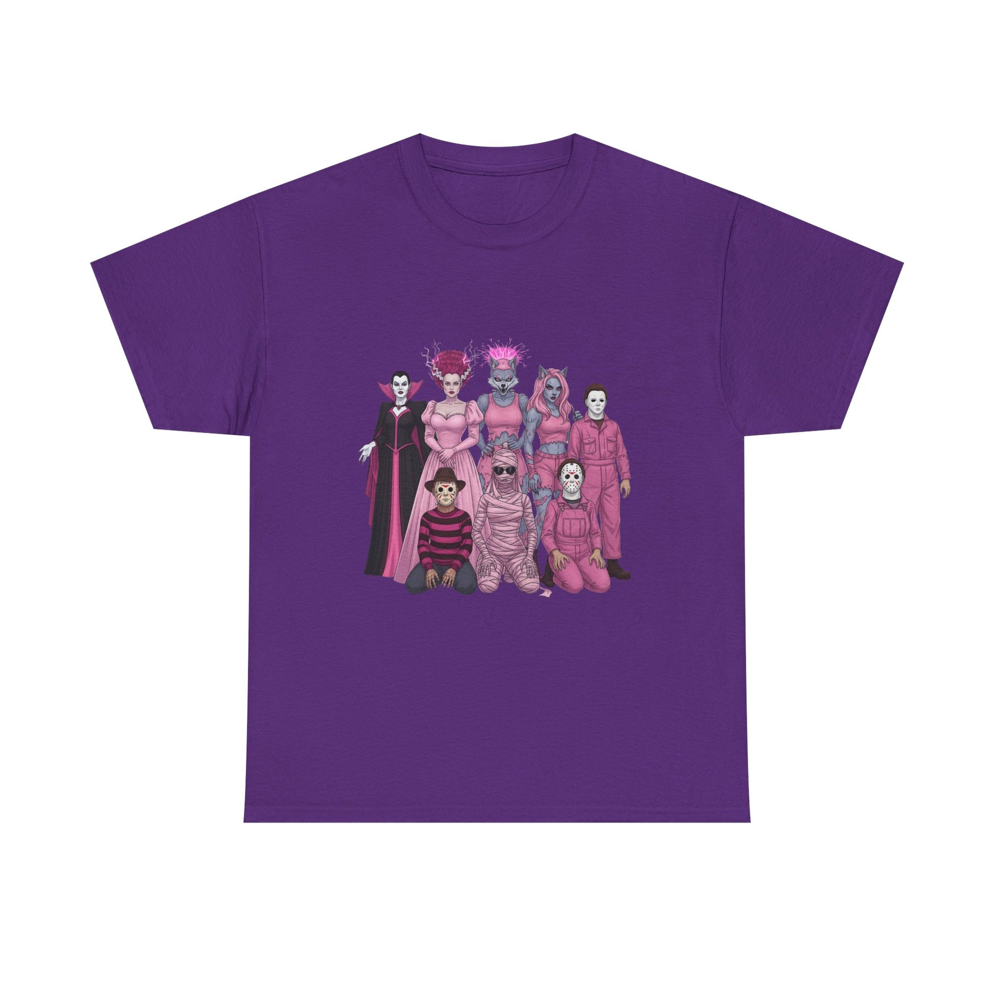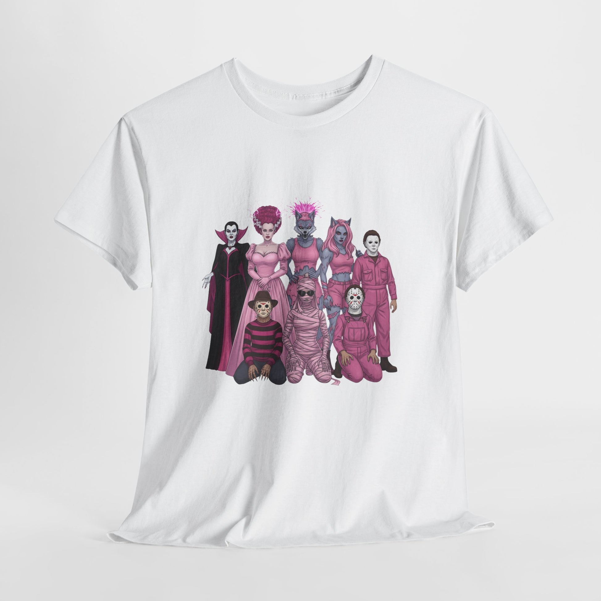 This unique design brings together horror's most terrifying villains, reimagined as a powerful, all-female squad, united in a sea of pink. From a resilient Michelle Myers and a tenacious Lady Krueger to the iconic Bride of Frankenstein and a fearsome She-Wolf, these "femme fatales" stand in solidarity for Breast Cancer Awareness Month.