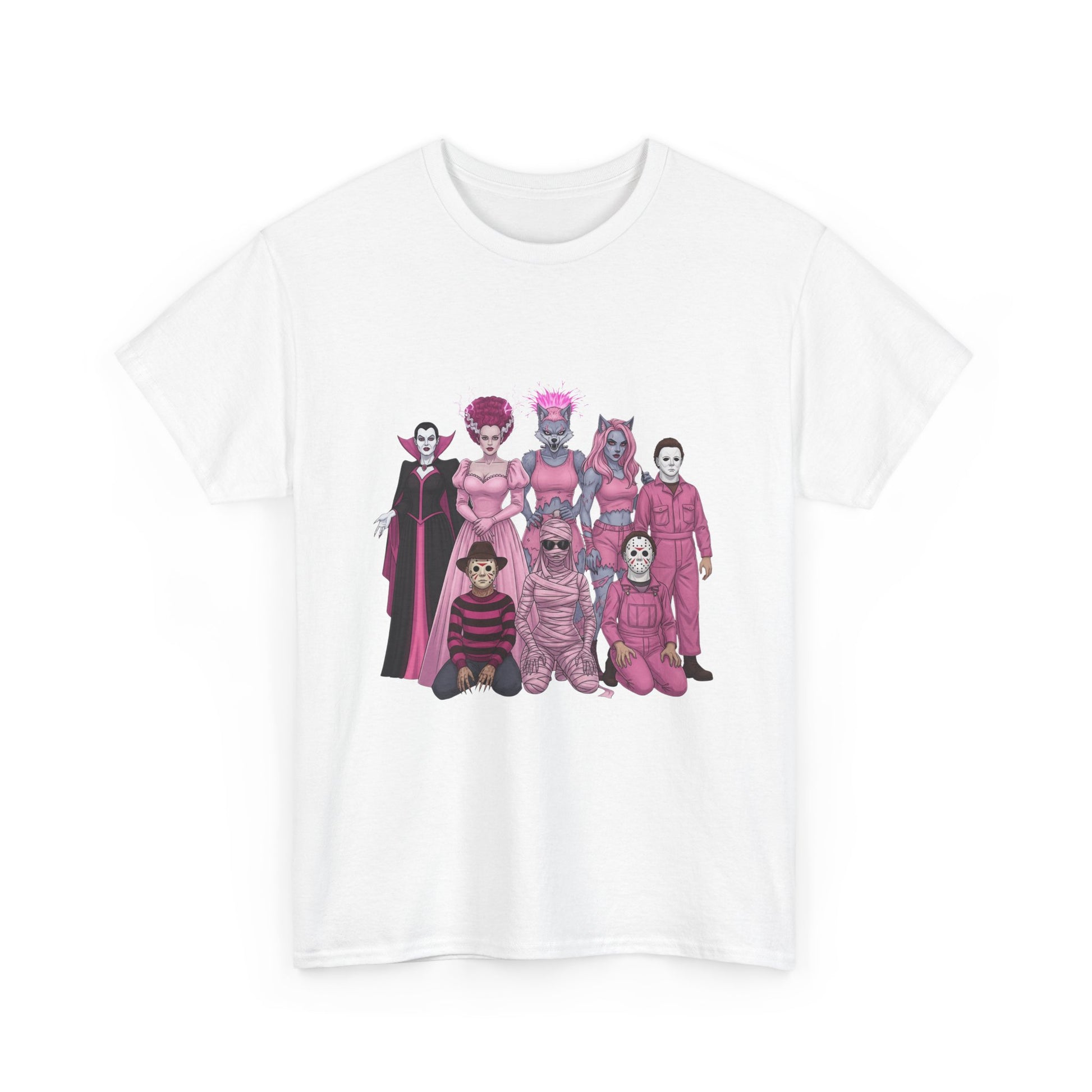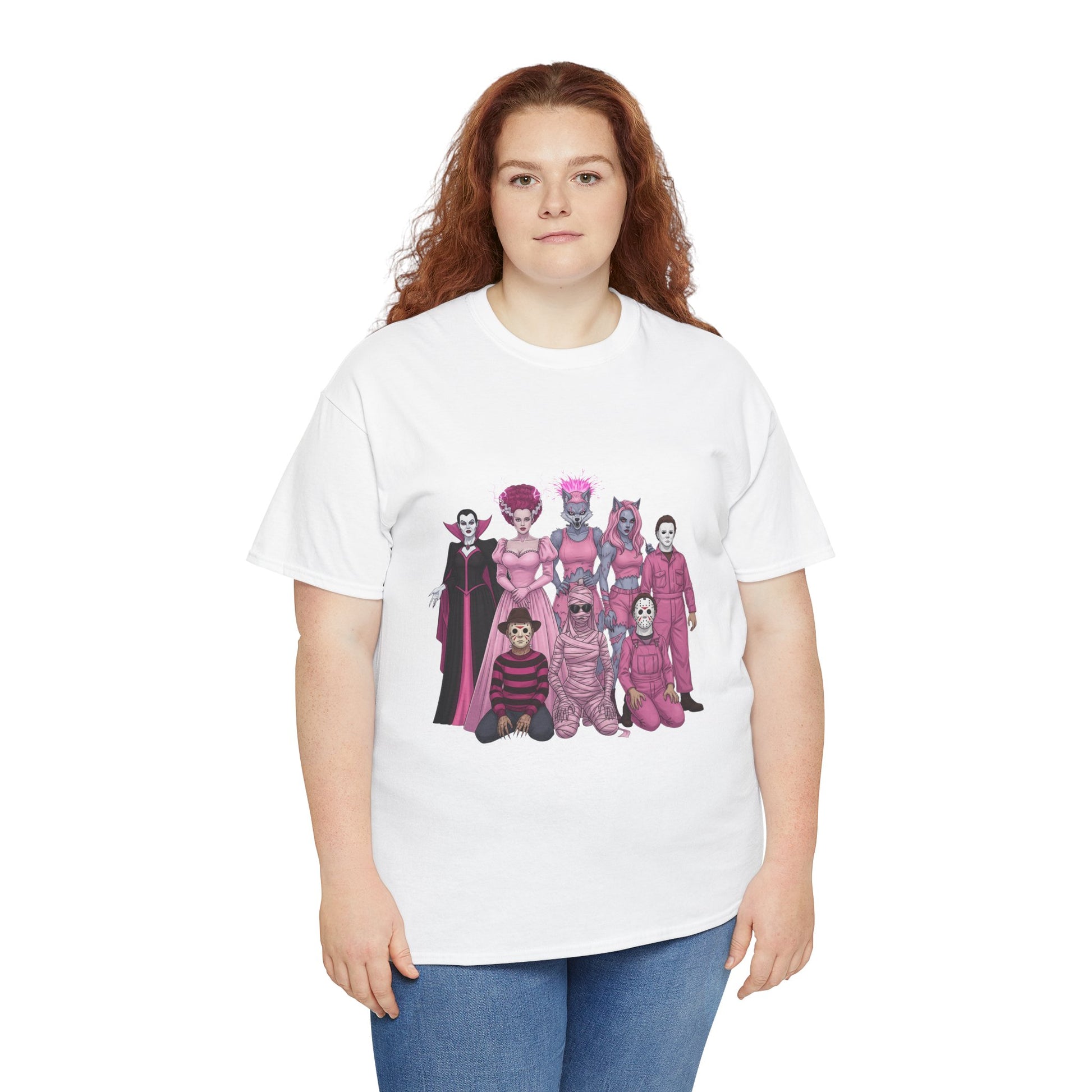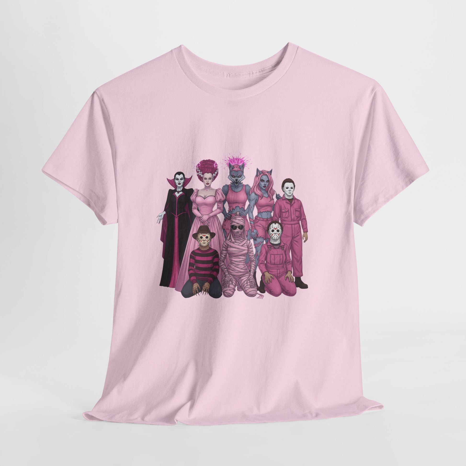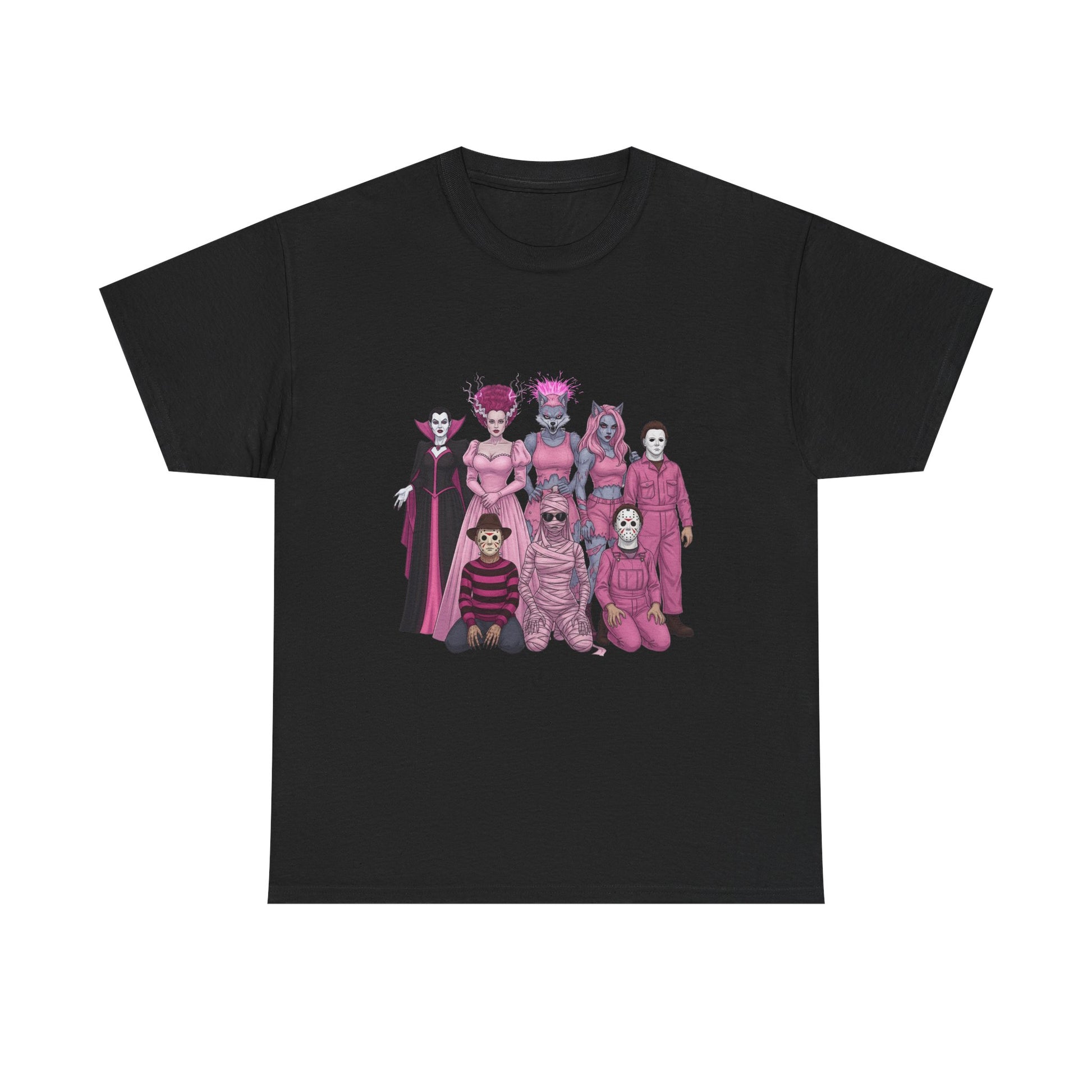 This unique design brings together horror's most terrifying villains, reimagined as a powerful, all-female squad, united in a sea of pink. From a resilient Michelle Myers and a tenacious Lady Krueger to the iconic Bride of Frankenstein and a fearsome She-Wolf, these "femme fatales" stand in solidarity for Breast Cancer Awareness Month.