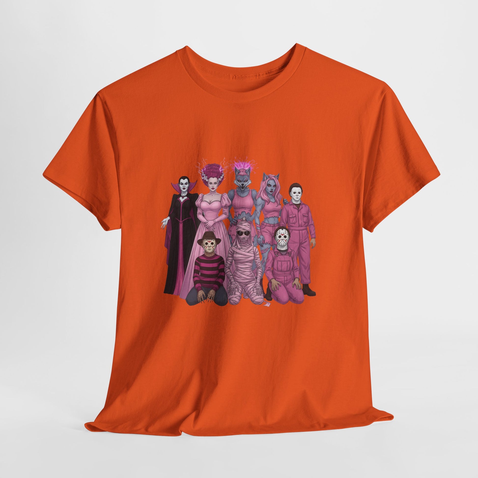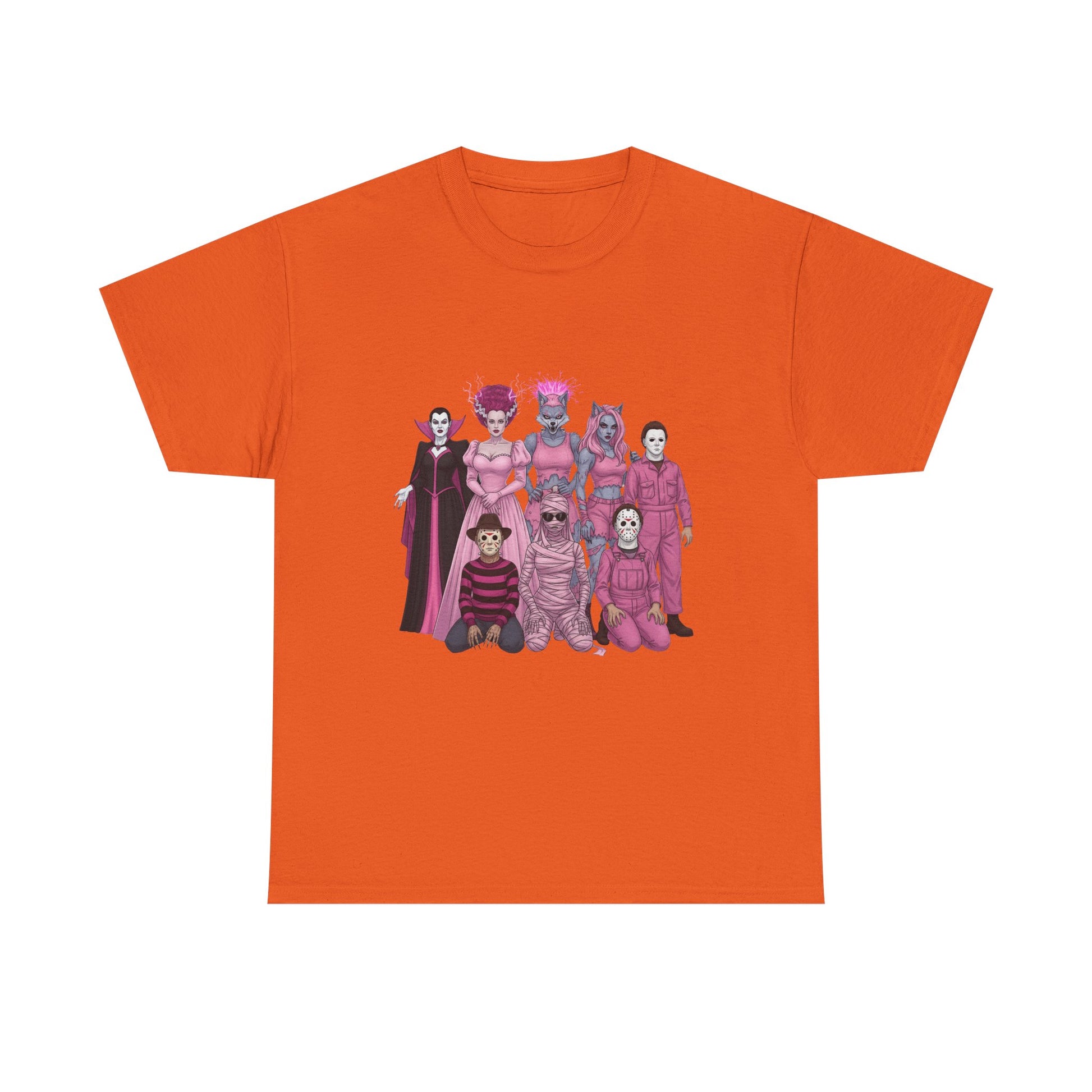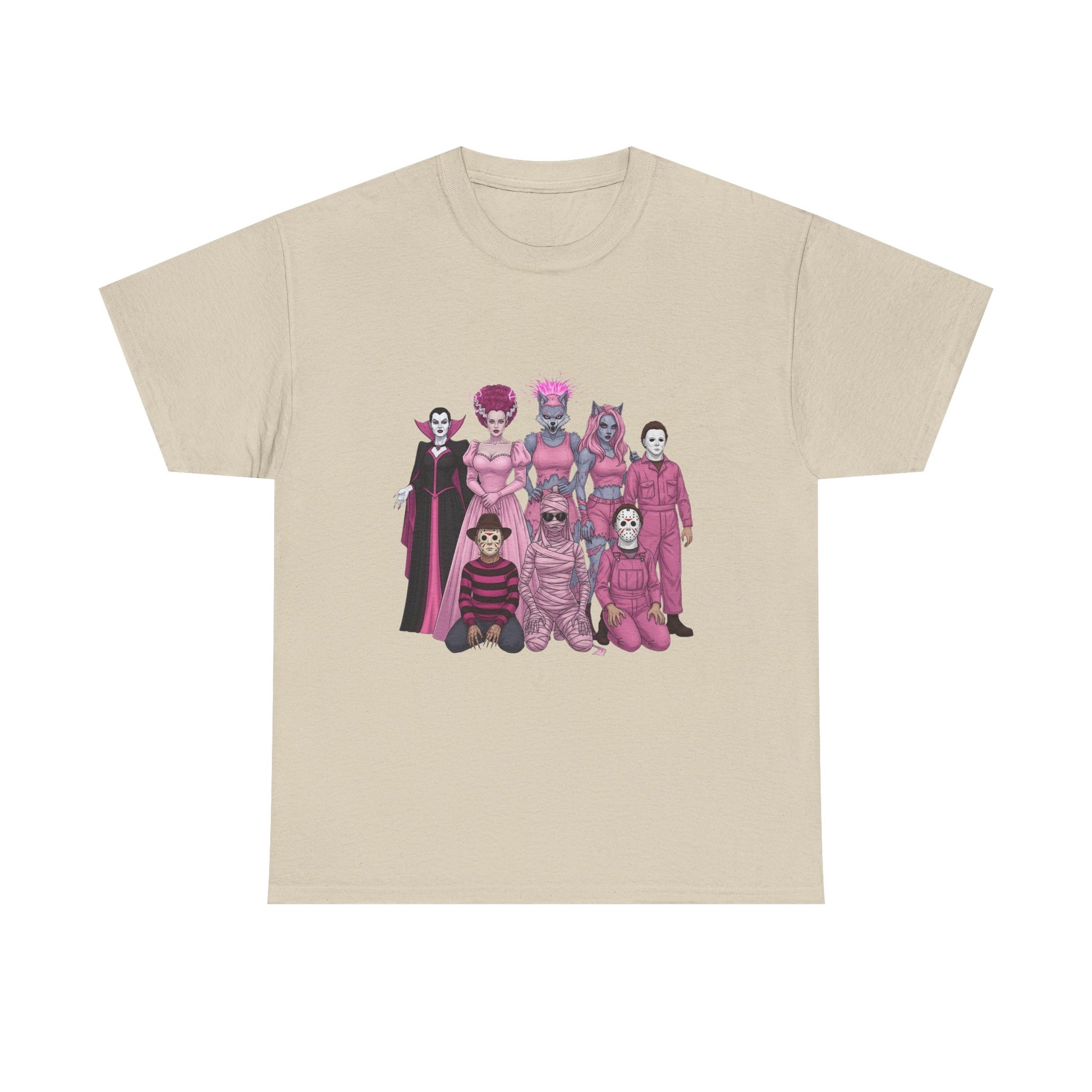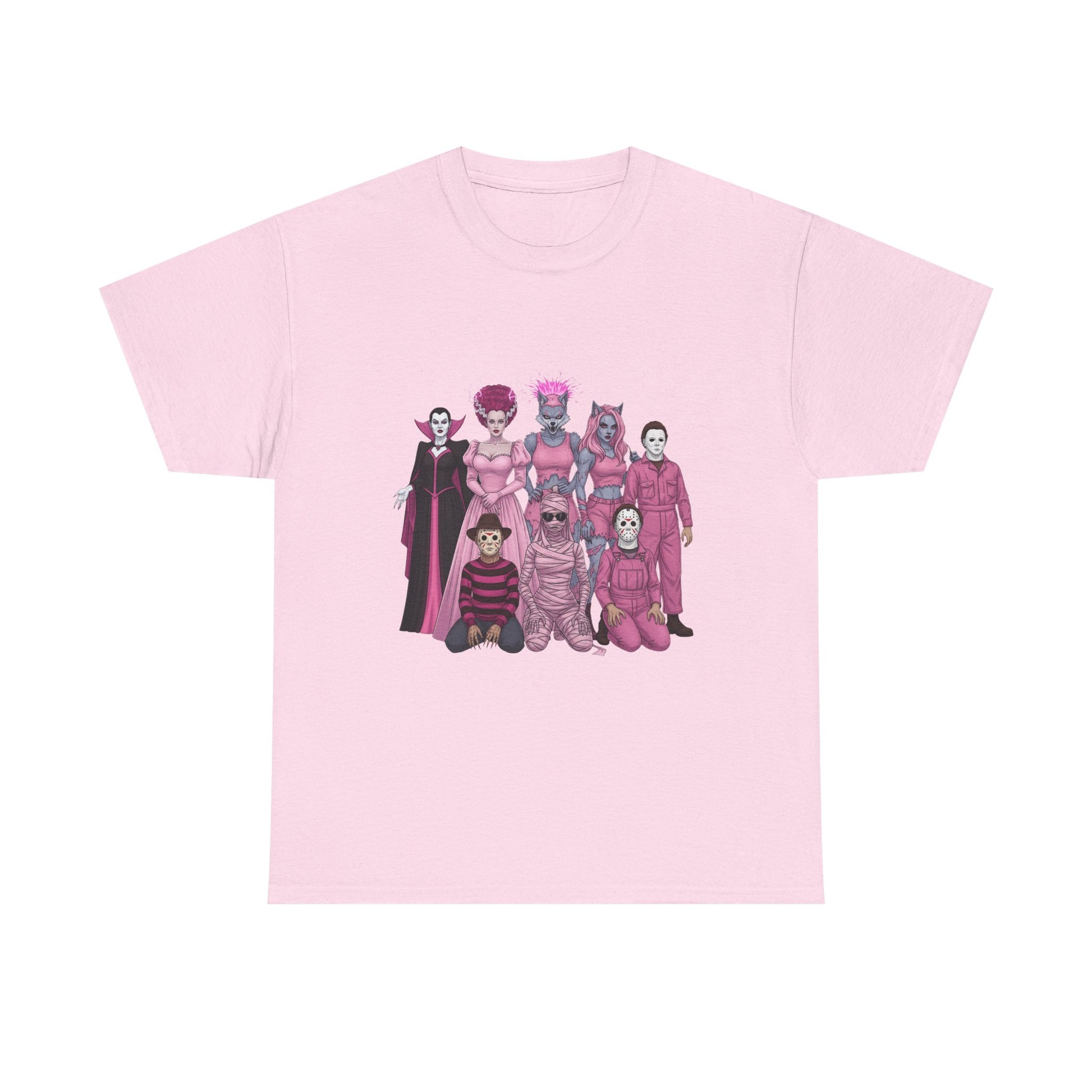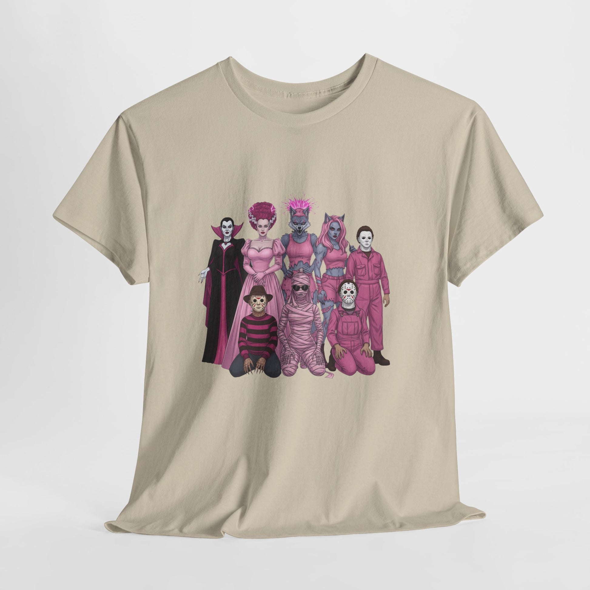 This unique design brings together horror's most terrifying villains, reimagined as a powerful, all-female squad, united in a sea of pink. From a resilient Michelle Myers and a tenacious Lady Krueger to the iconic Bride of Frankenstein and a fearsome She-Wolf, these "femme fatales" stand in solidarity for Breast Cancer Awareness Month.