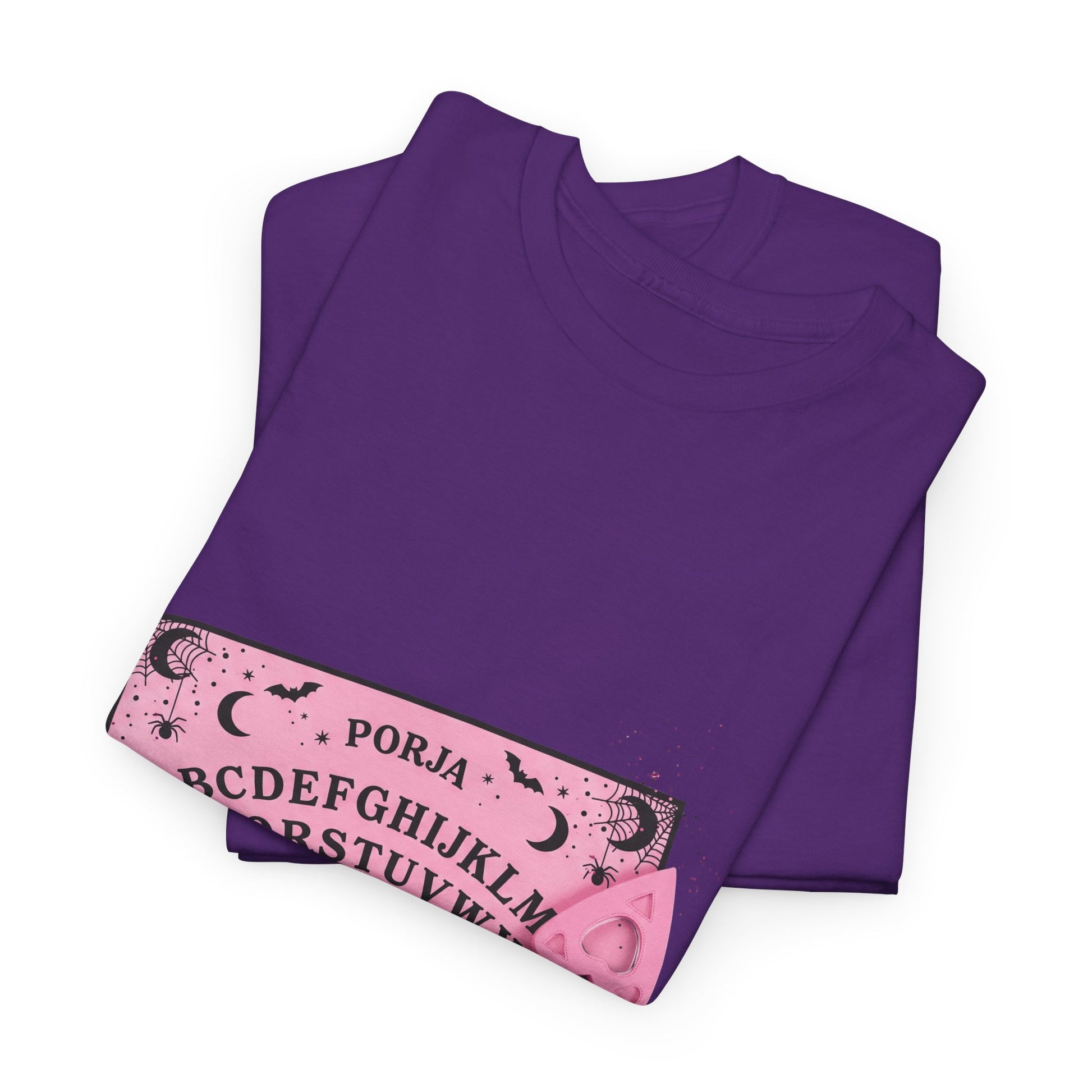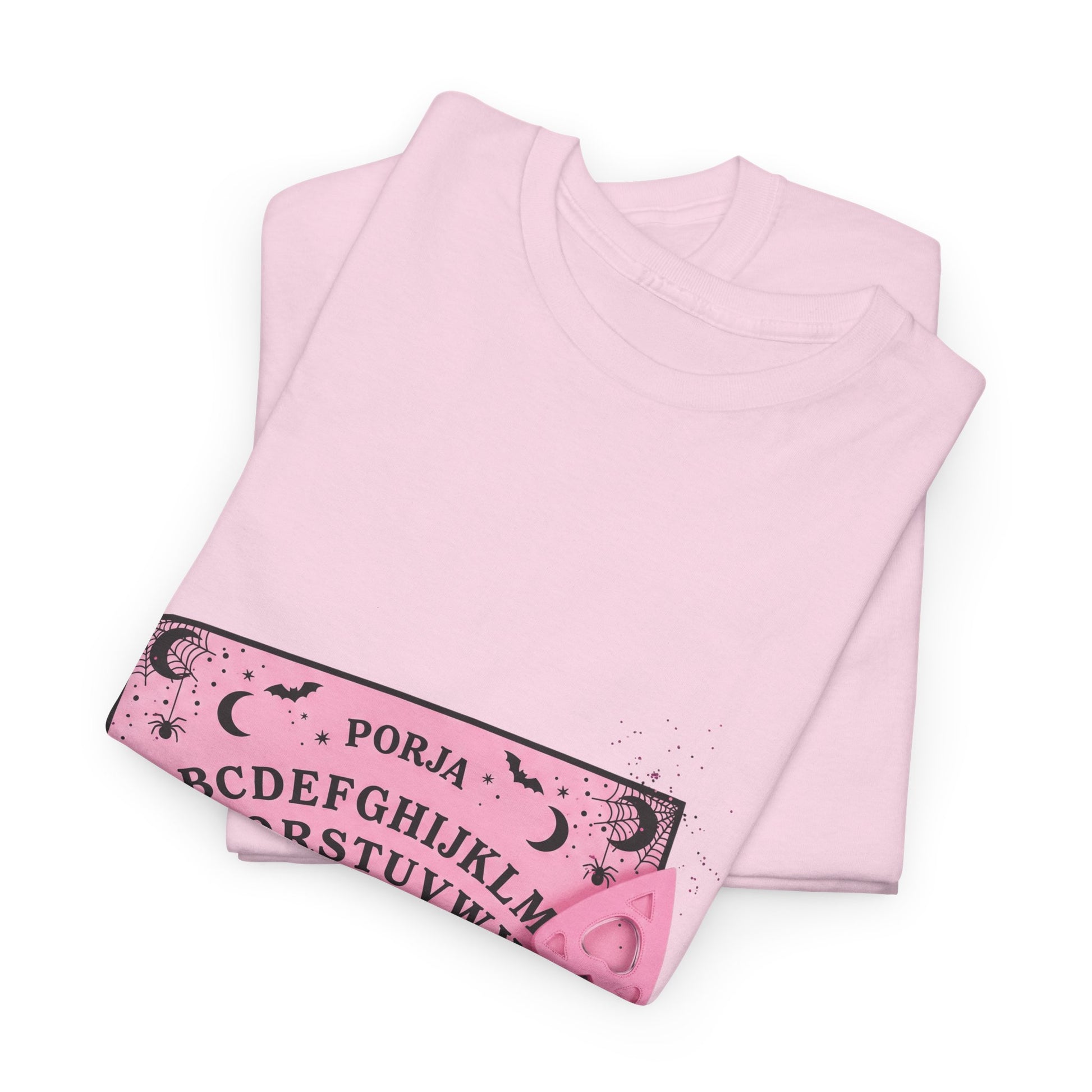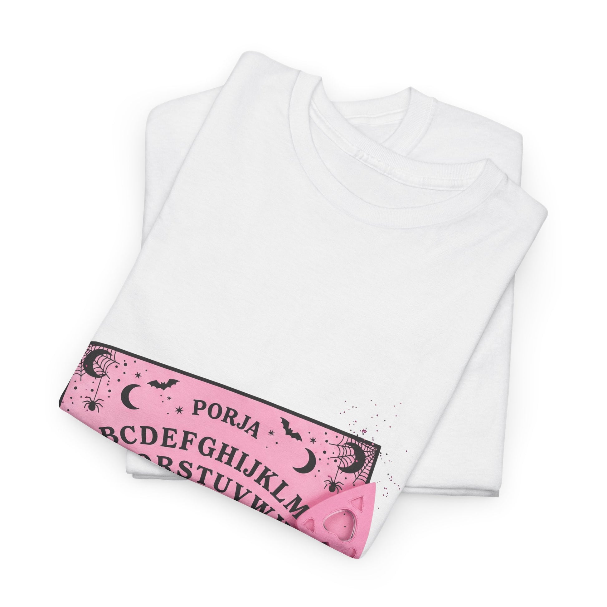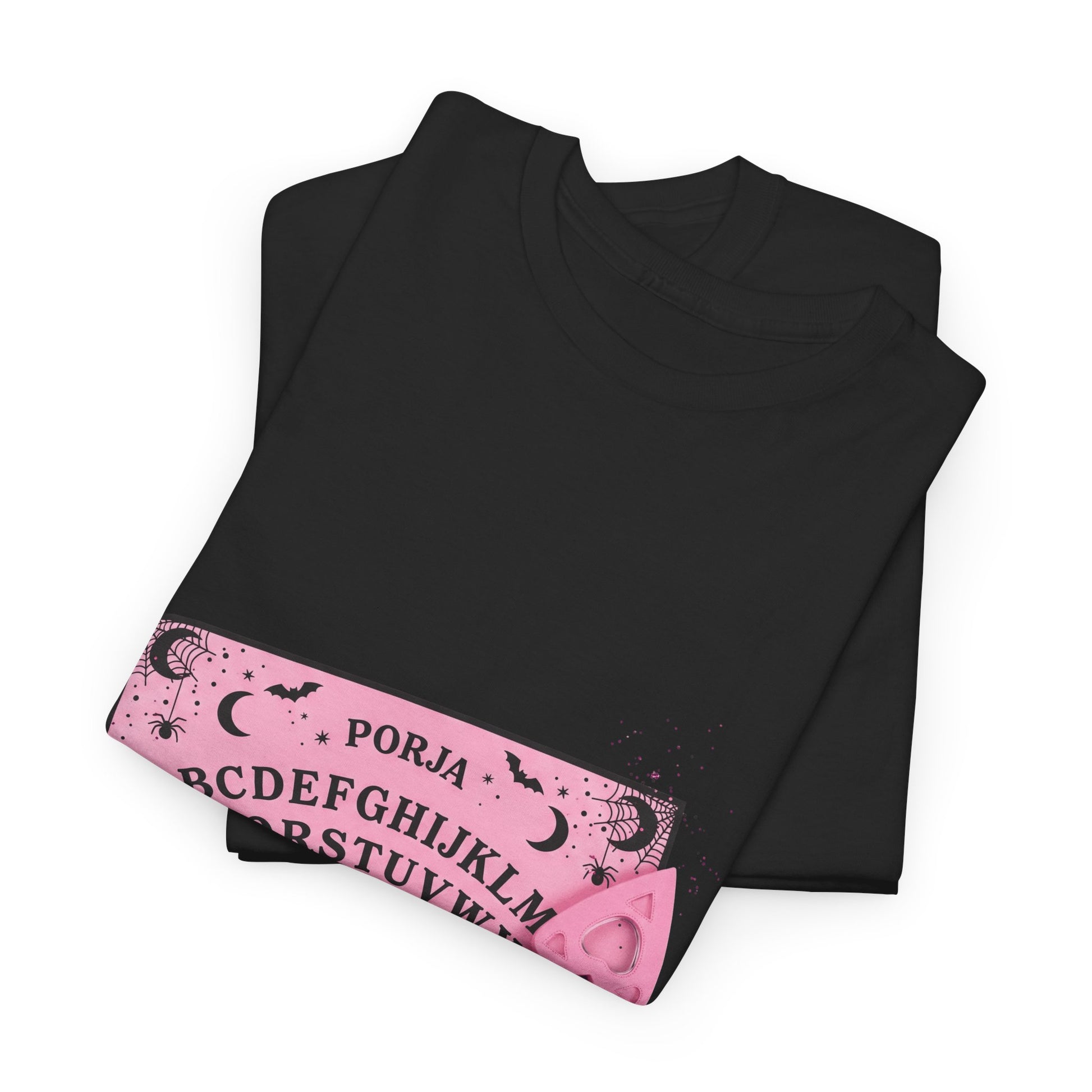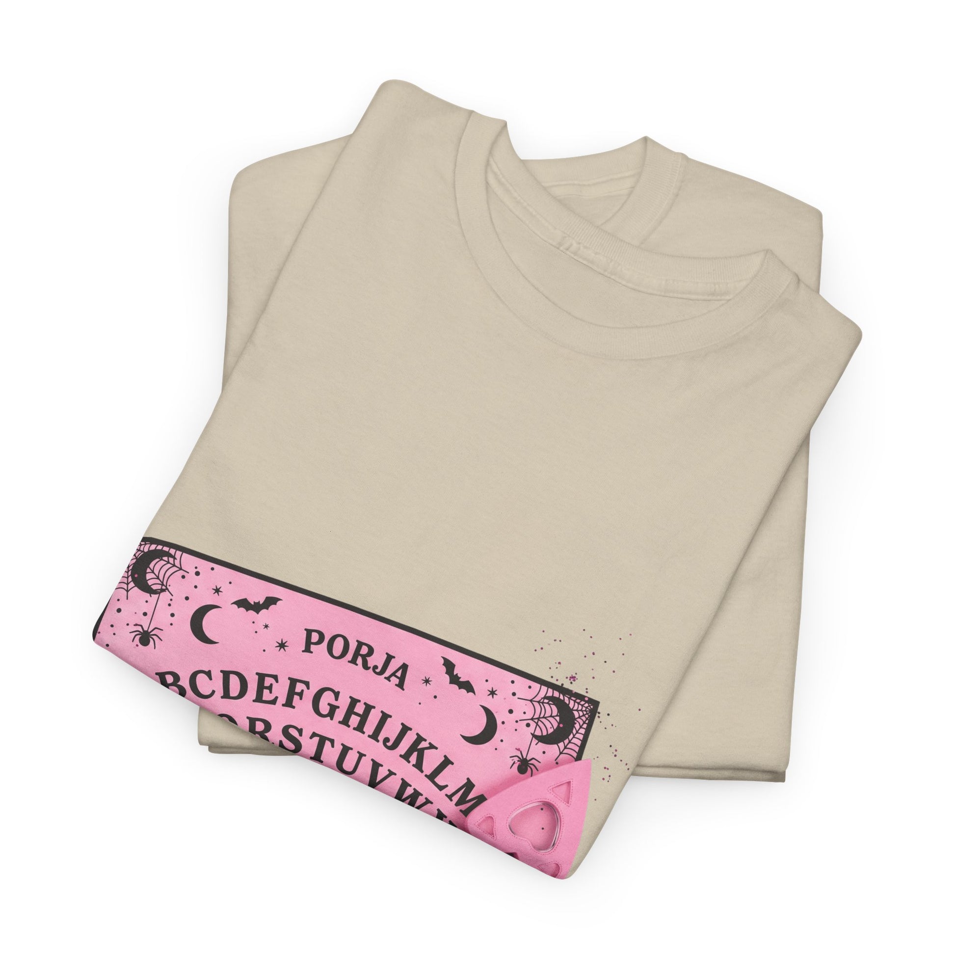This October, channel a message of hope from the other side. This unique design reimagines the classic horror spirit board with a powerful and stylish pastel goth twist.