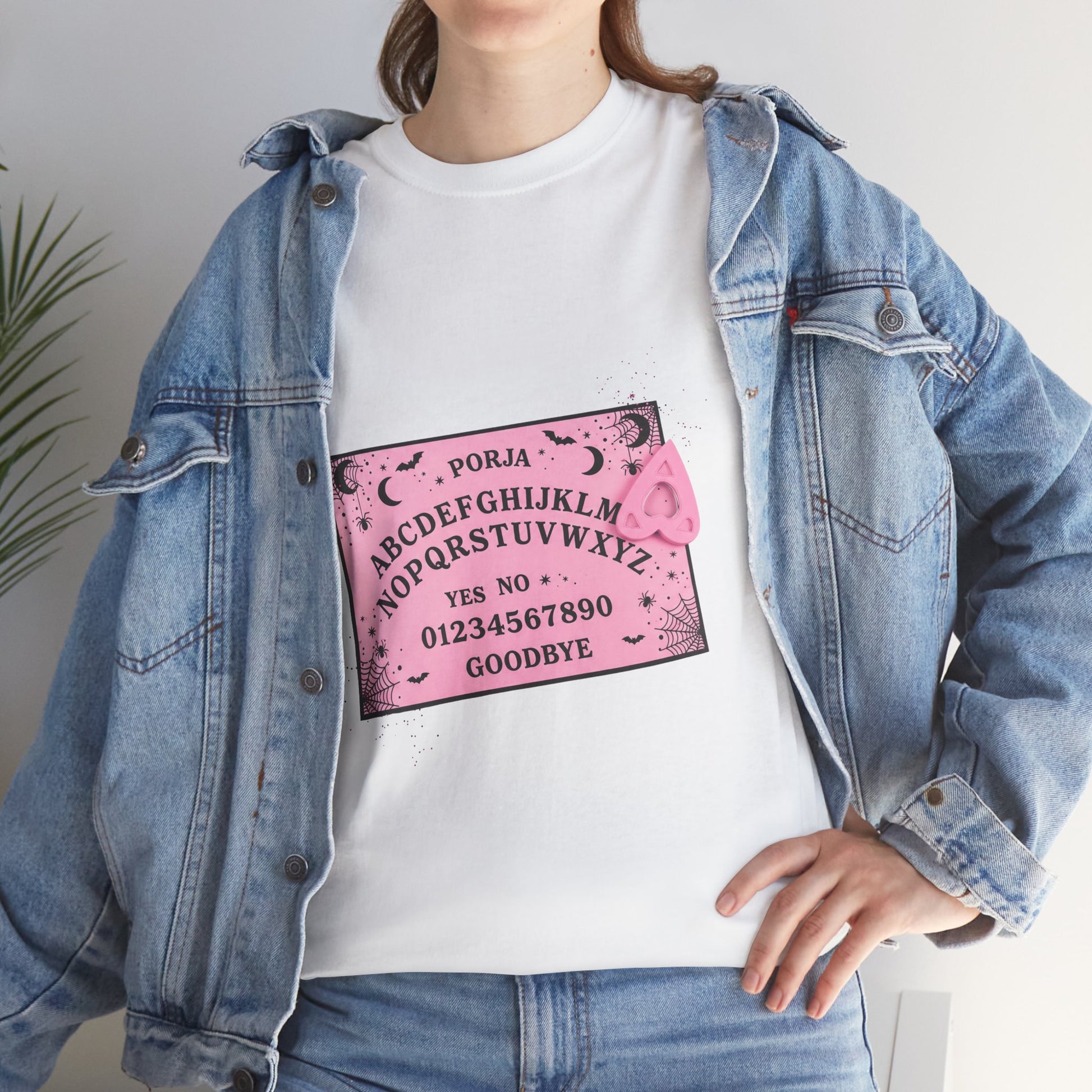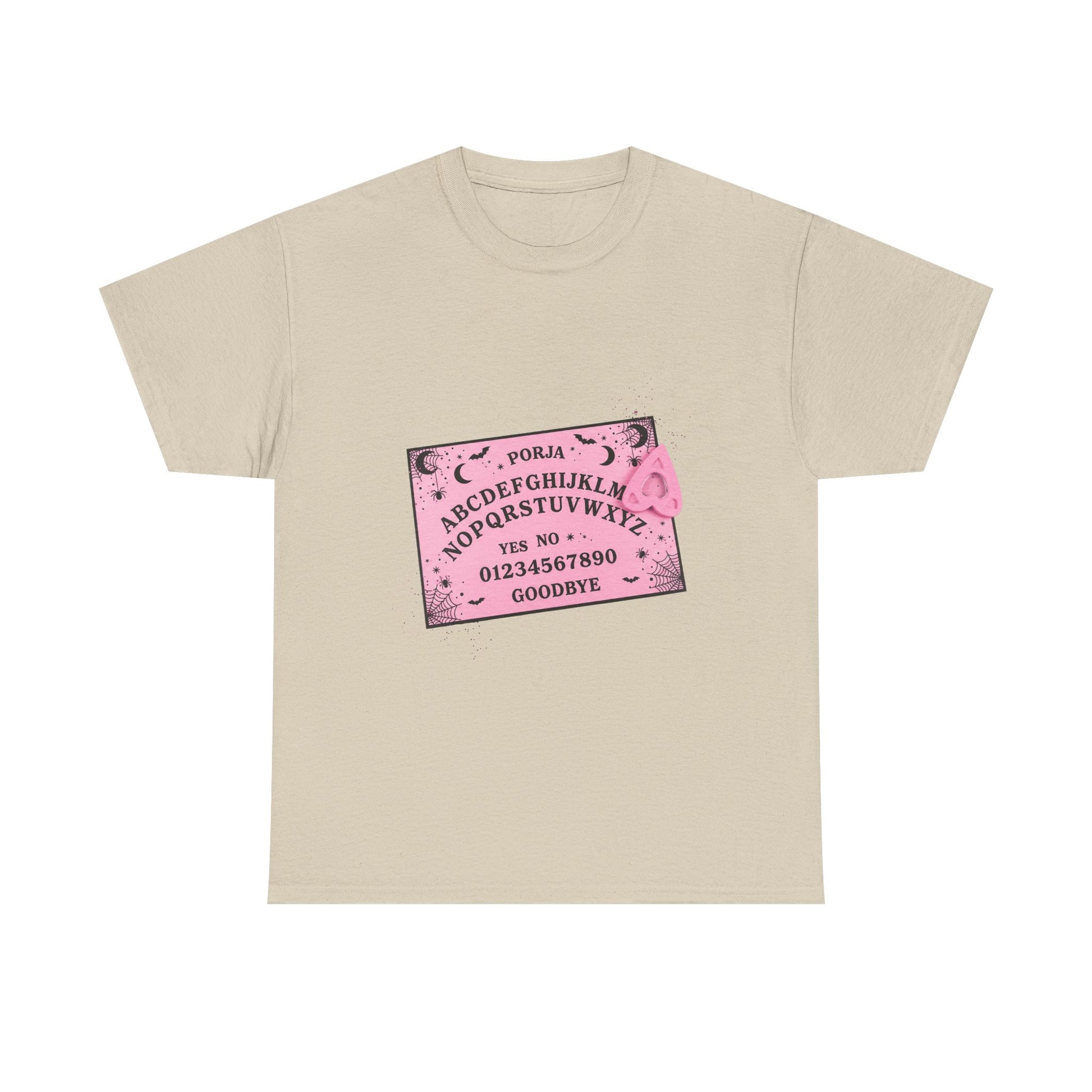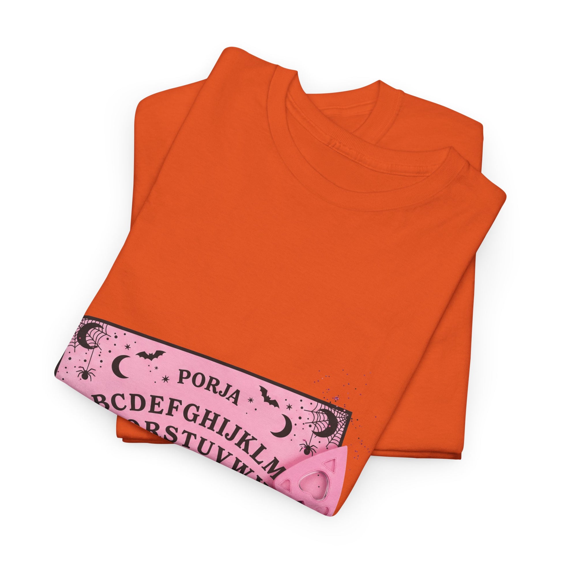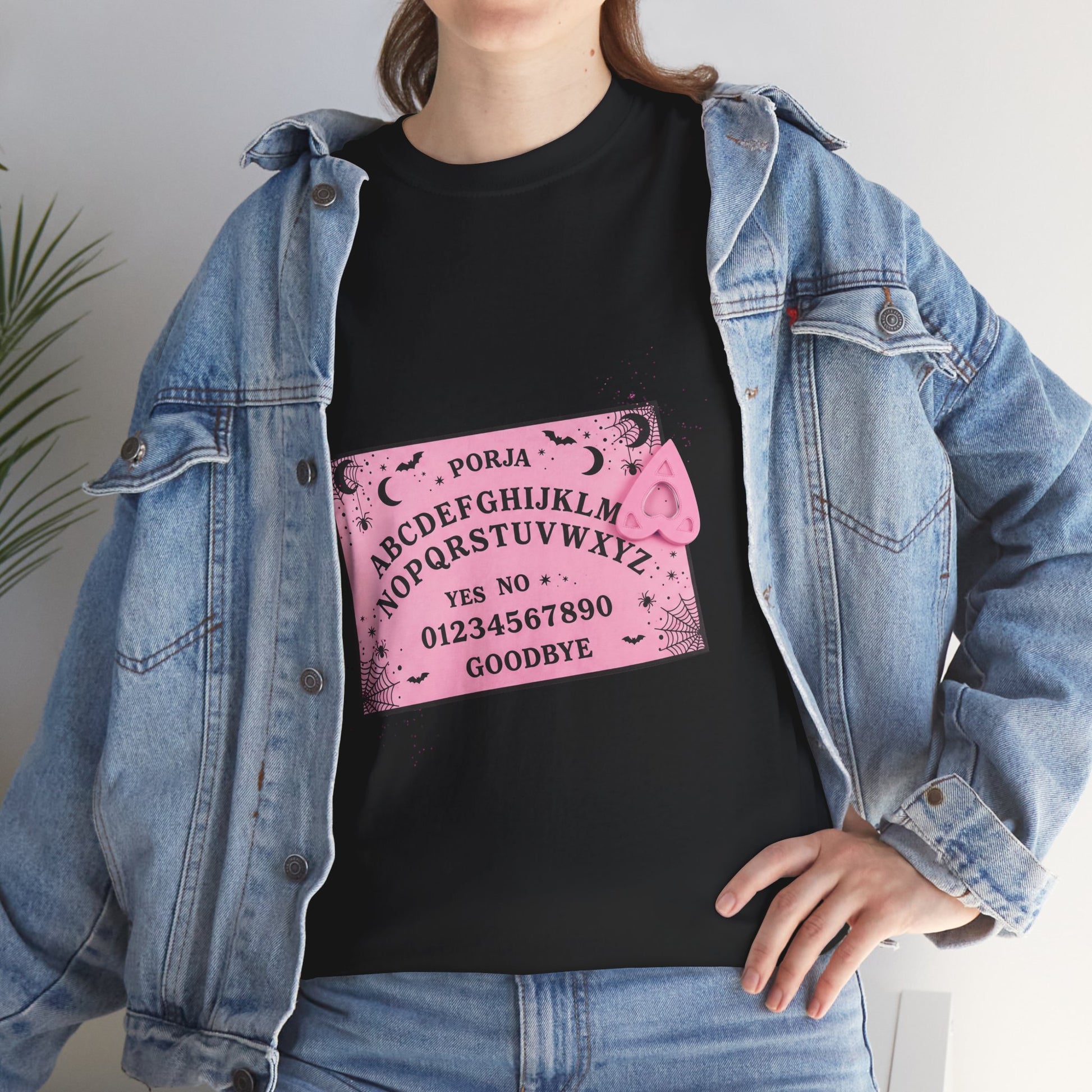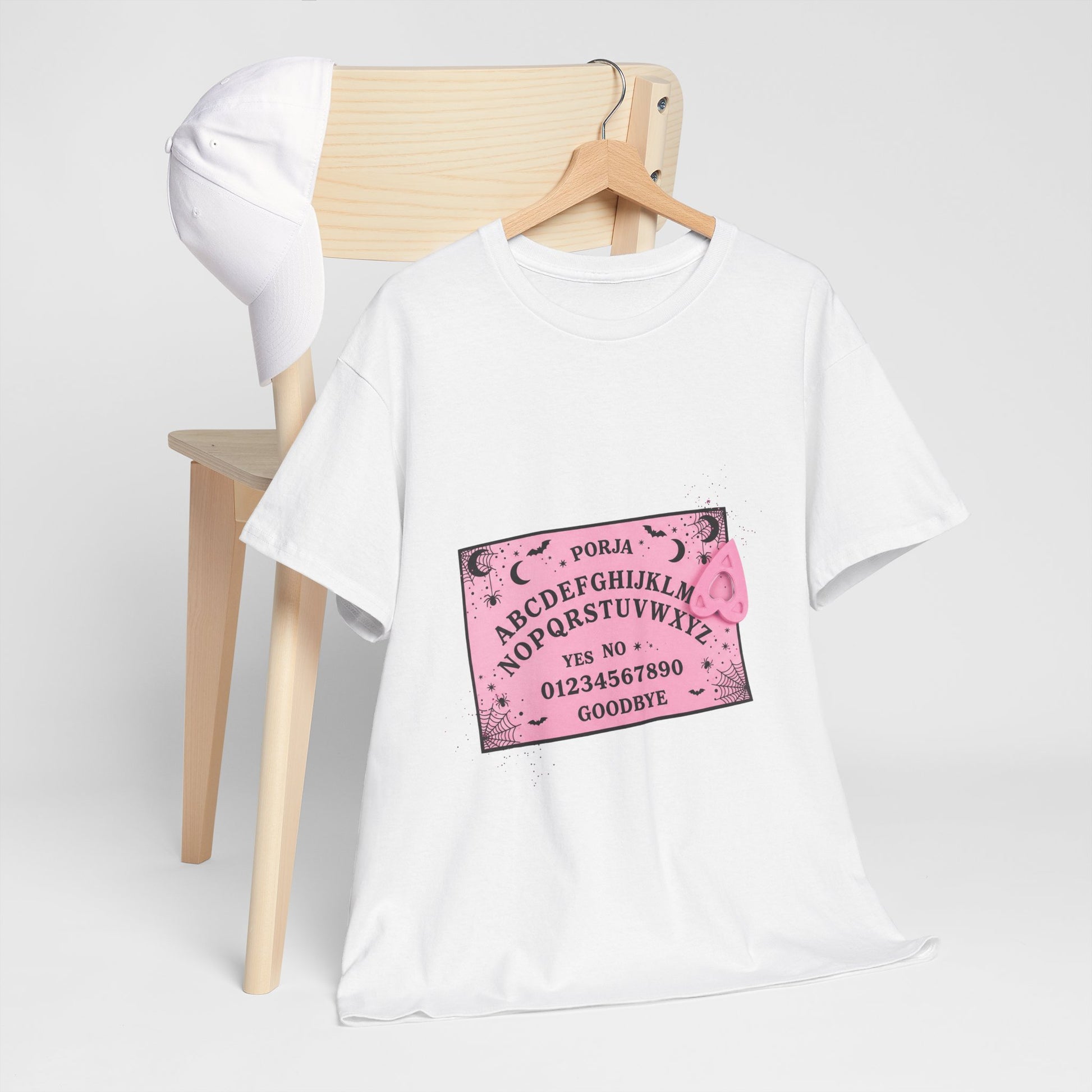 This October, channel a message of hope from the other side. This unique design reimagines the classic horror spirit board with a powerful and stylish pastel goth twist.