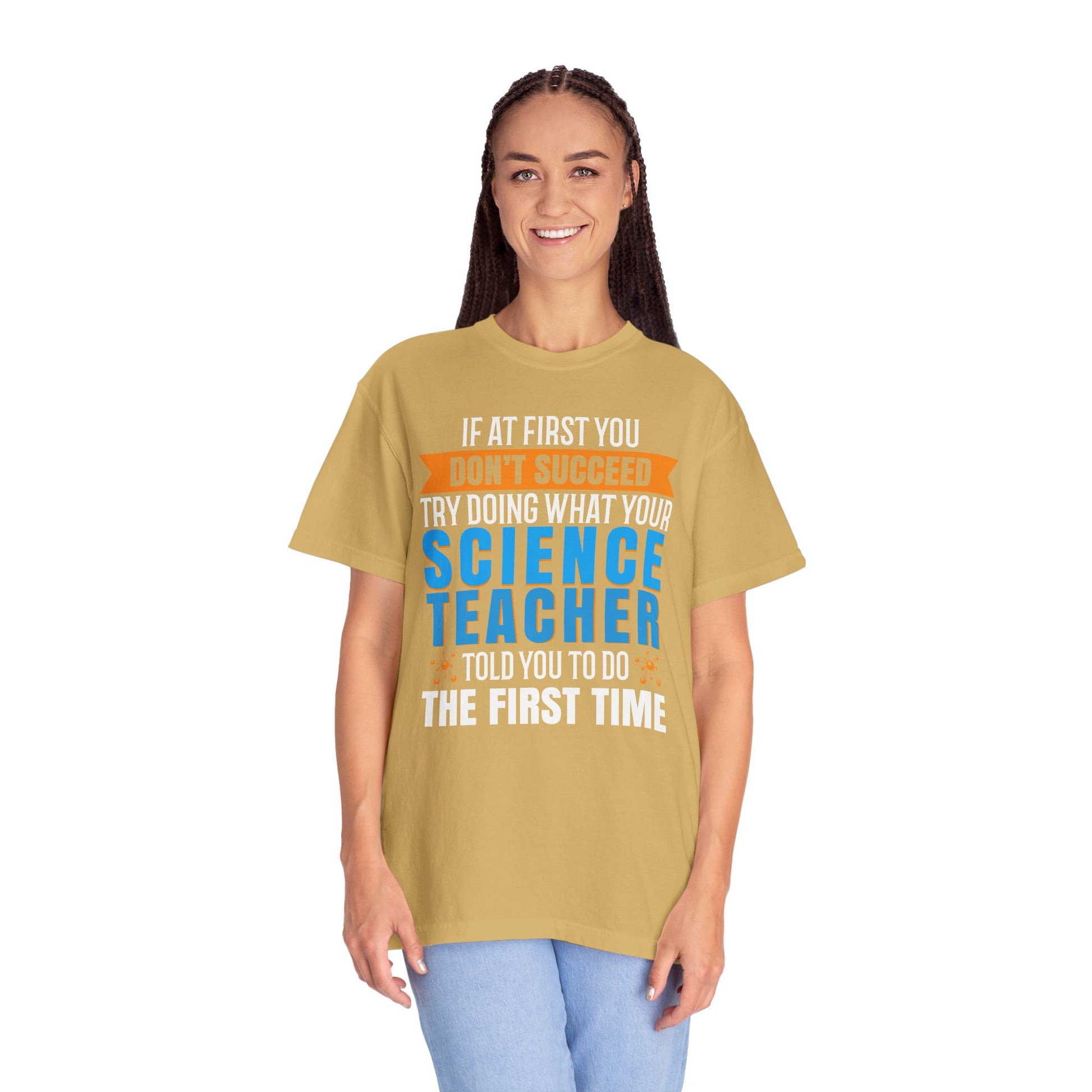 Unleash your inner scientist with our ‘Science Success Tee,’ exclusively at www.diversprintemporium.com! This striking t-shirt is not just a piece of clothing; it’s a statement of perseverance and trust in education. Emblazoned with the wise words, ‘If at first you don’t succeed, try doing what your science teacher told you to do the first time,’ this tee is perfect for students, educators, and science enthusiasts alike. Crafted from high-quality materials, this shirt ensures comfort and durability for all-day wear. The bold lettering against a contrasting background makes it both eye-catching and thought-provoking. Whether in the lab or on the go, this t-shirt is sure to spark conversations and inspire others.