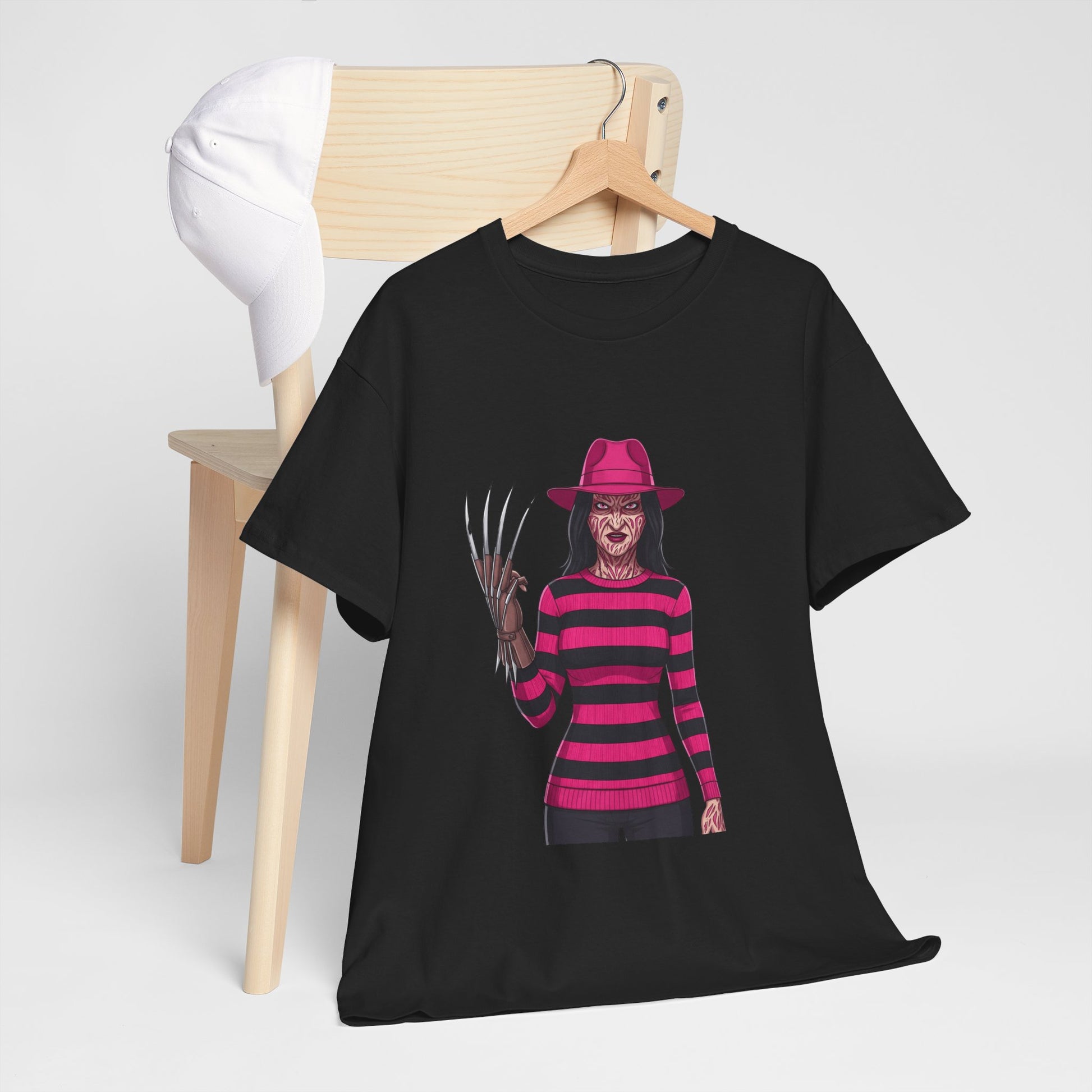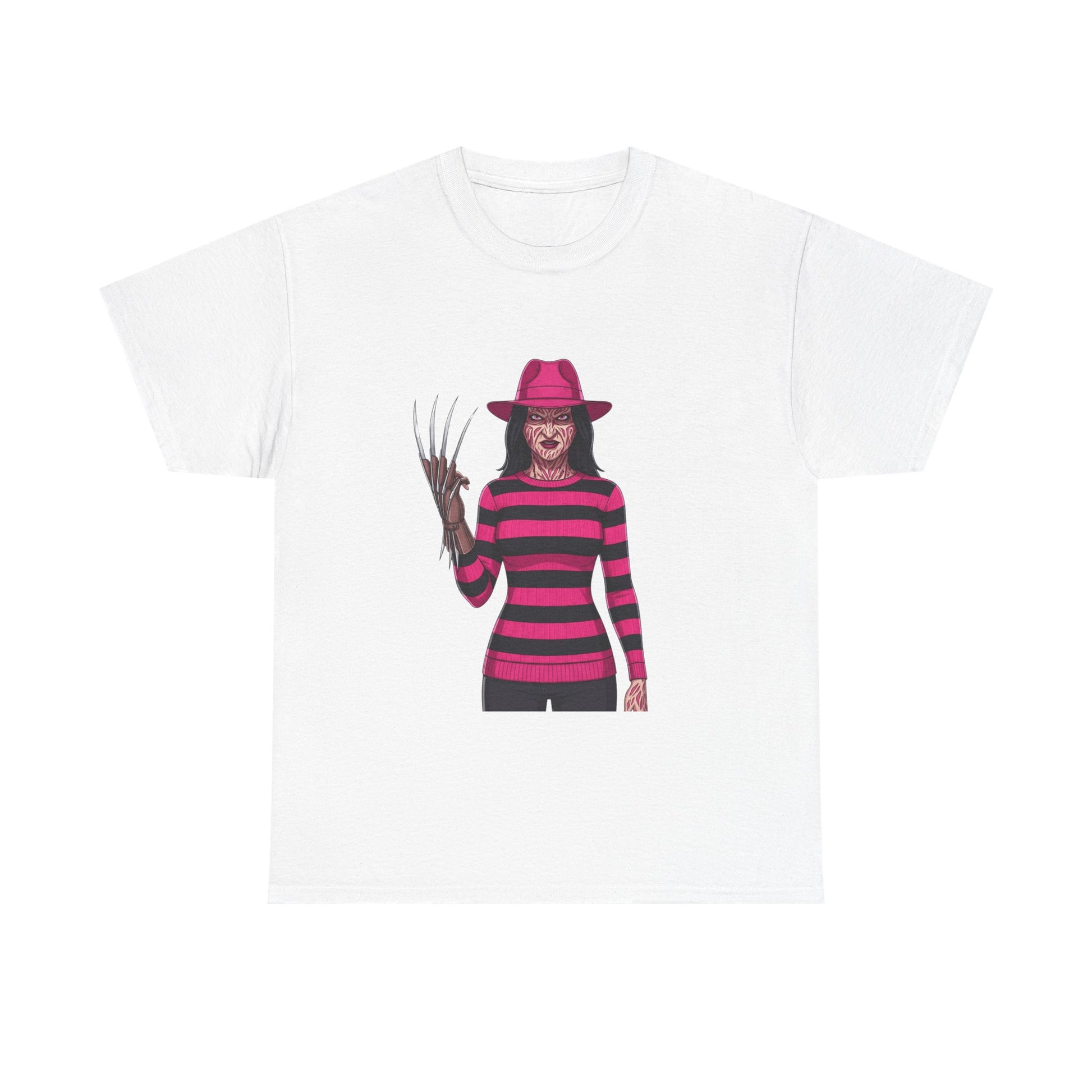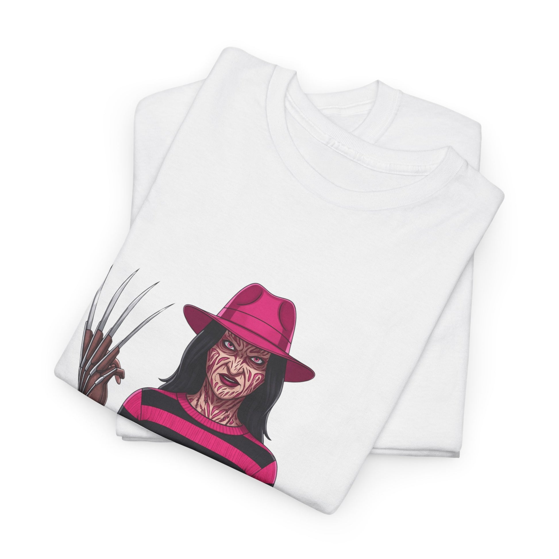 This unique design features the iconic horror queen with her signature bladed glove and scarred visage, but with a meaningful twist. Her classic sweater and fedora are now a bold and defiant pink in honor of Breast Cancer Awareness Month.