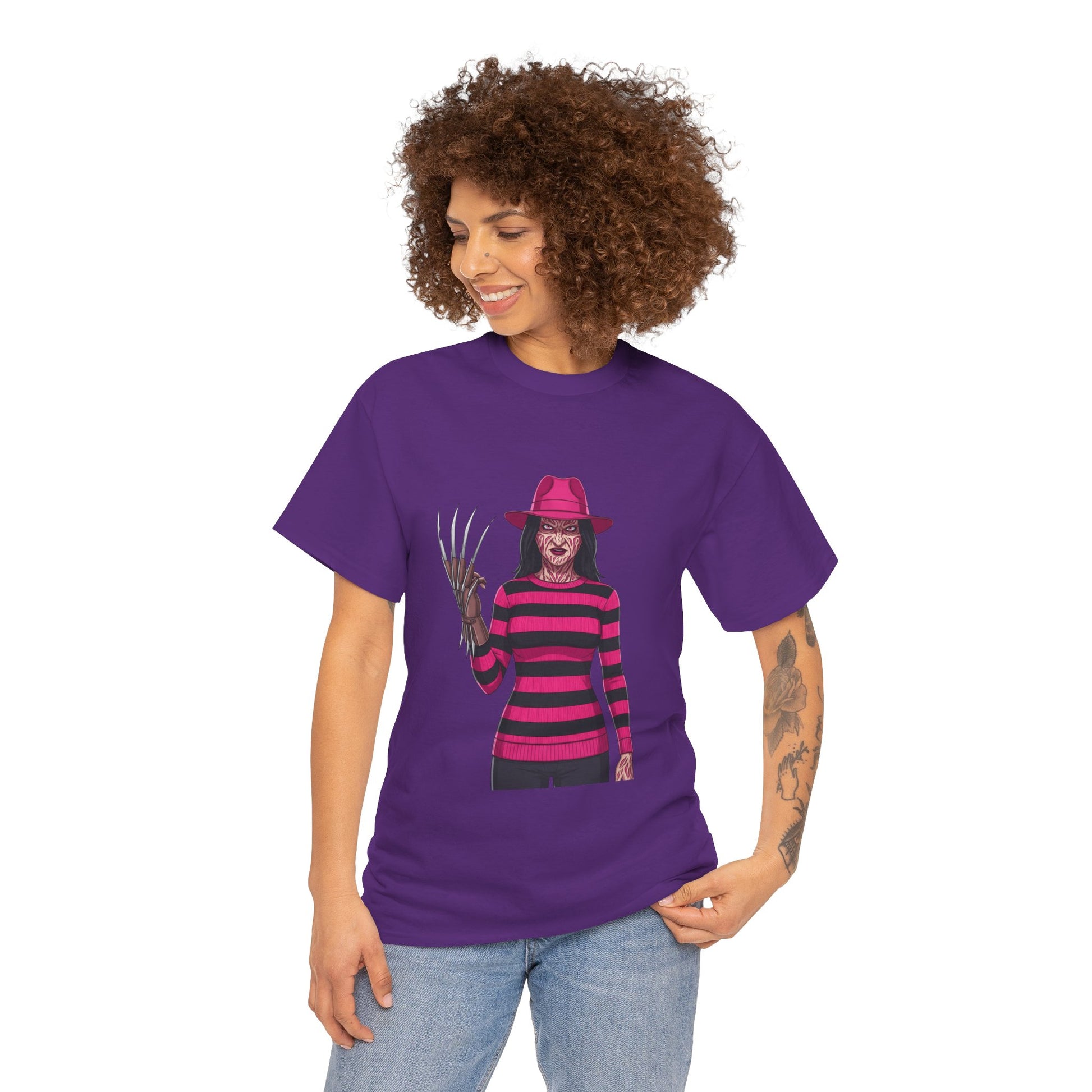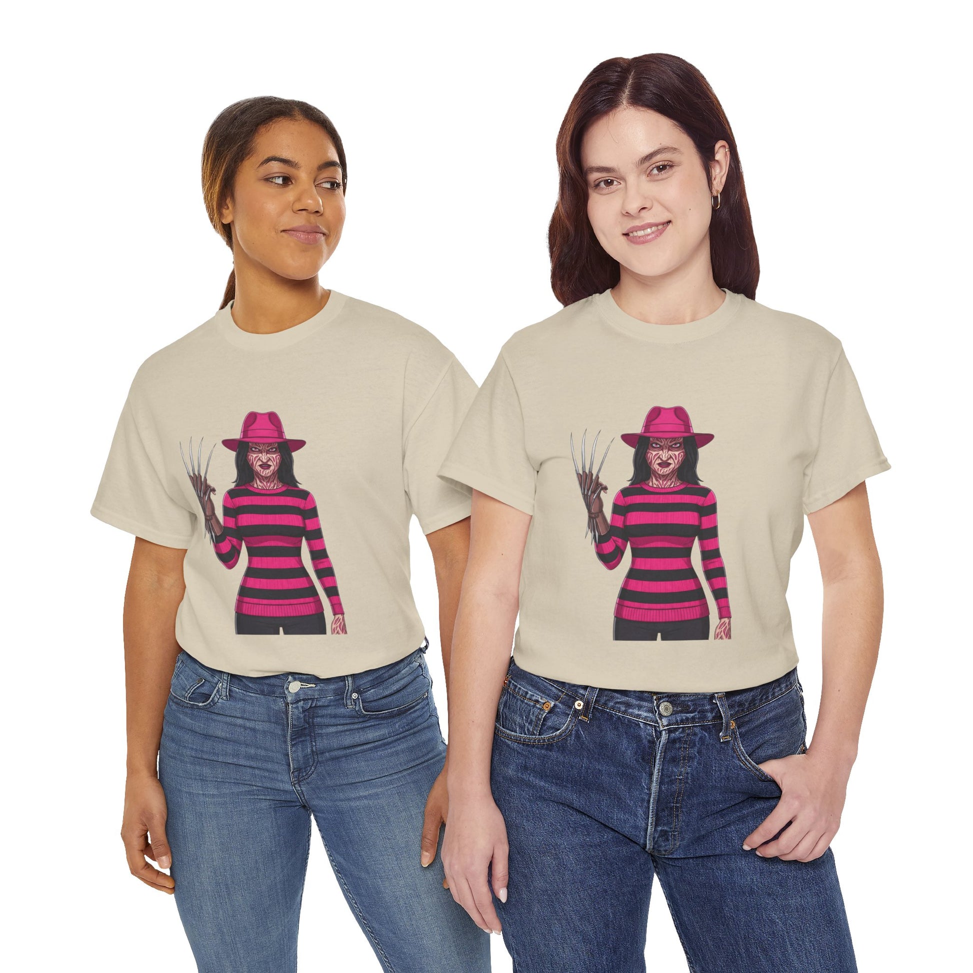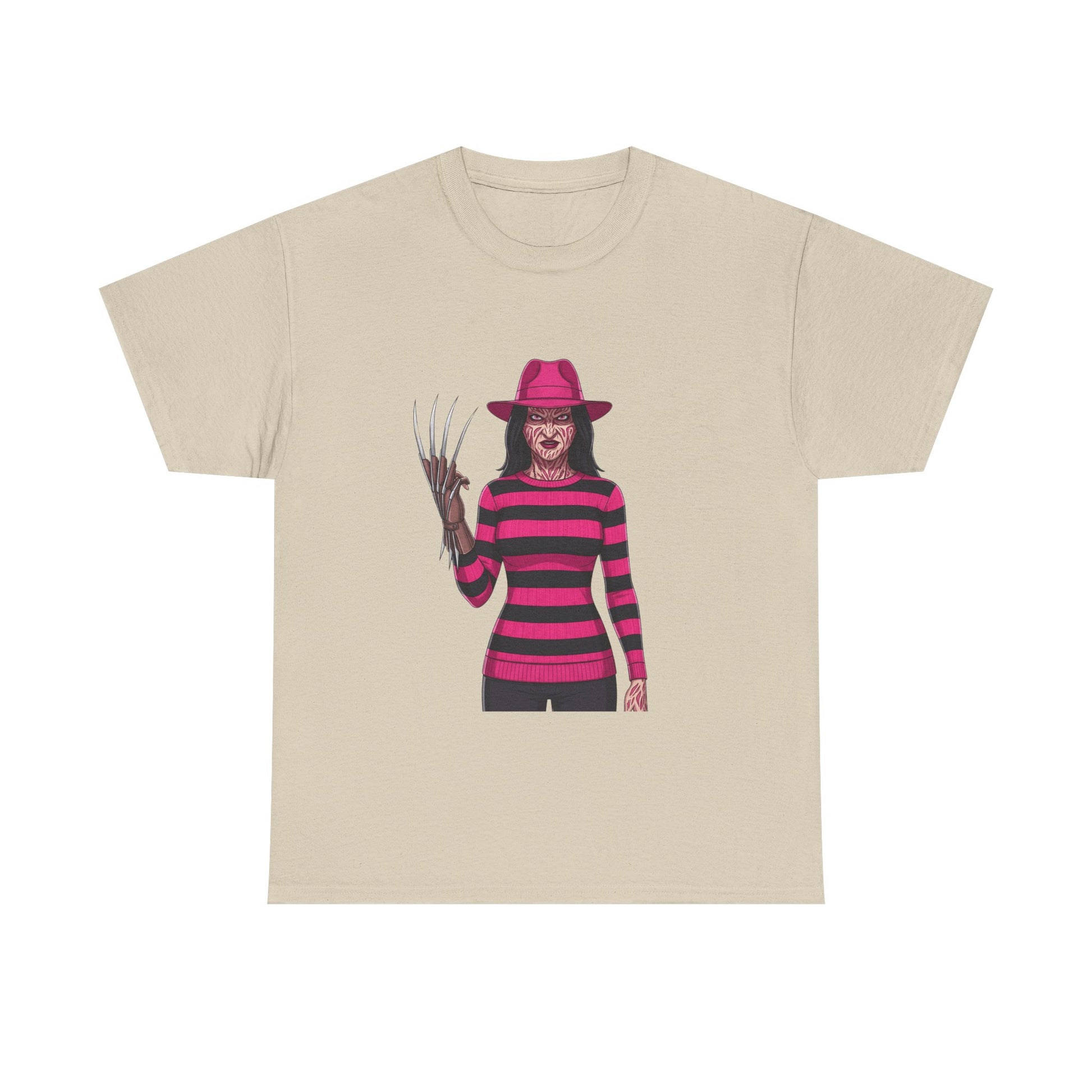 This unique design features the iconic horror queen with her signature bladed glove and scarred visage, but with a meaningful twist. Her classic sweater and fedora are now a bold and defiant pink in honor of Breast Cancer Awareness Month.