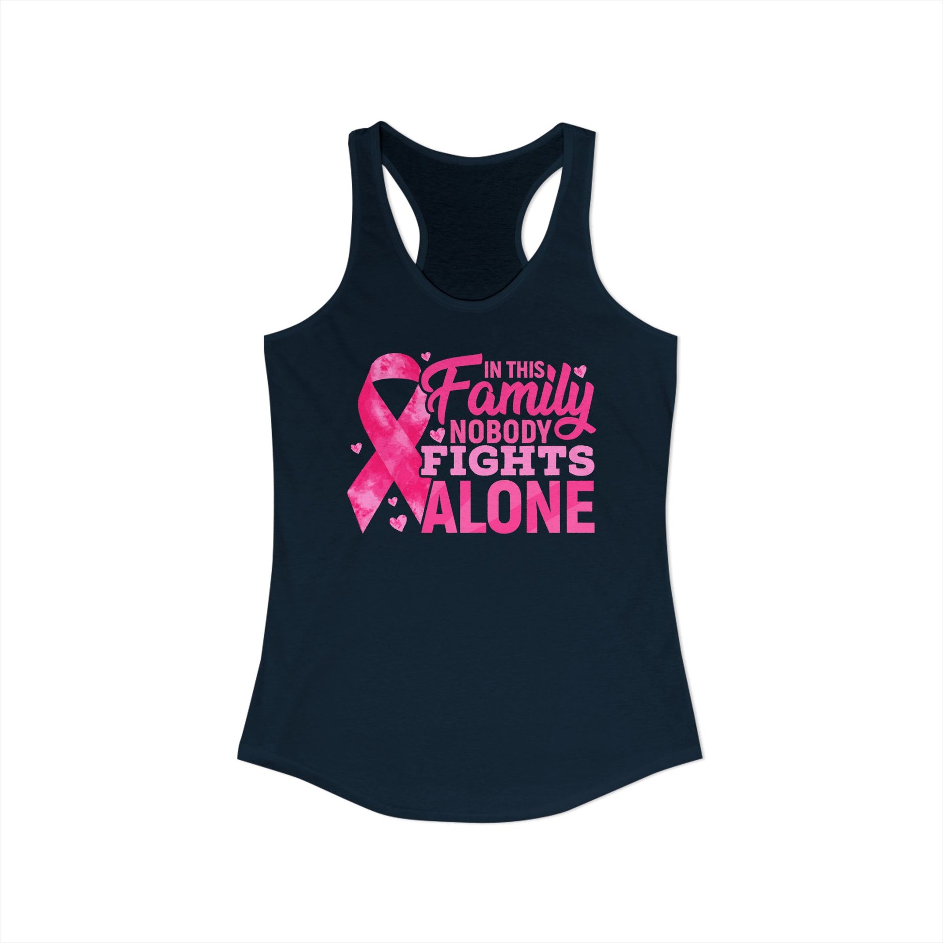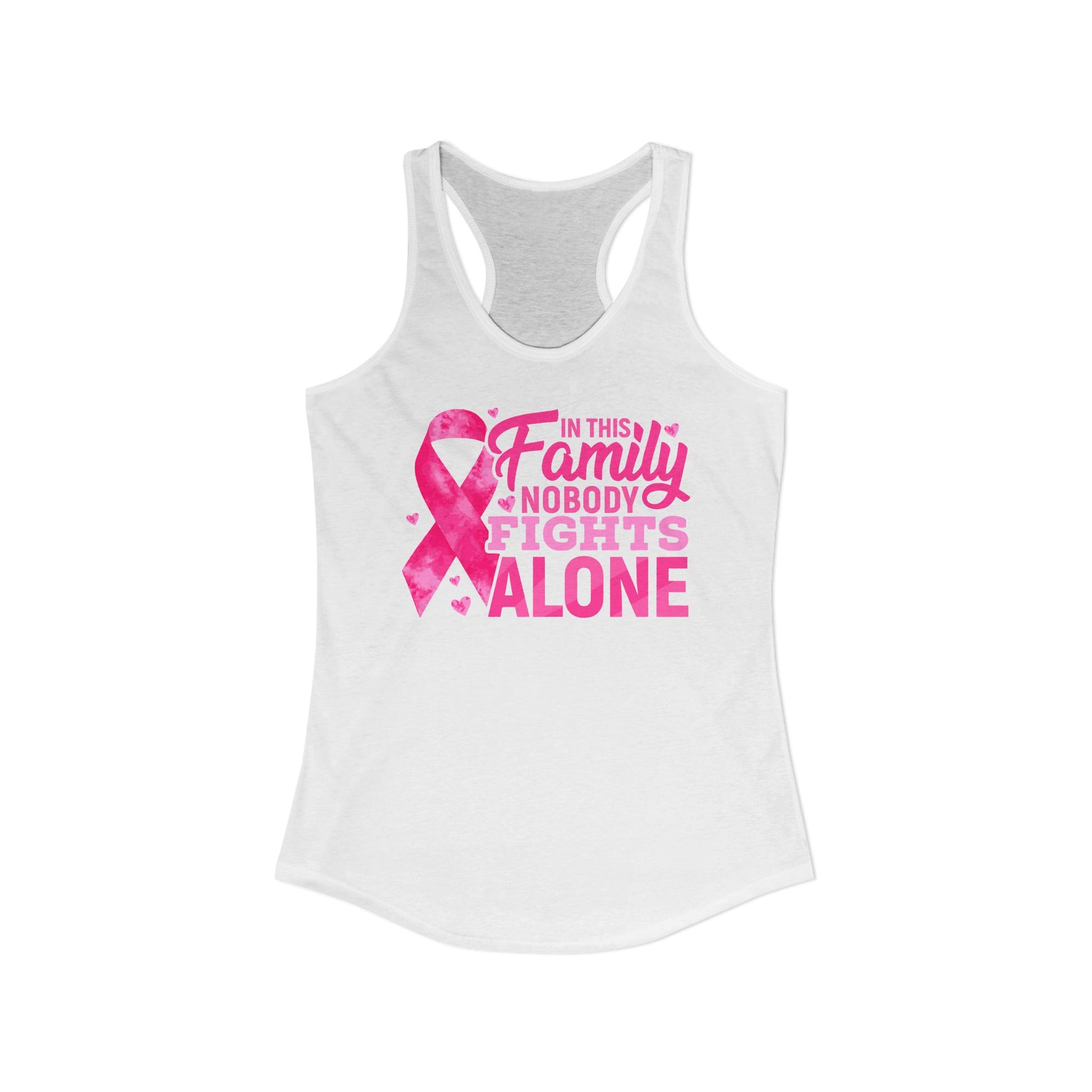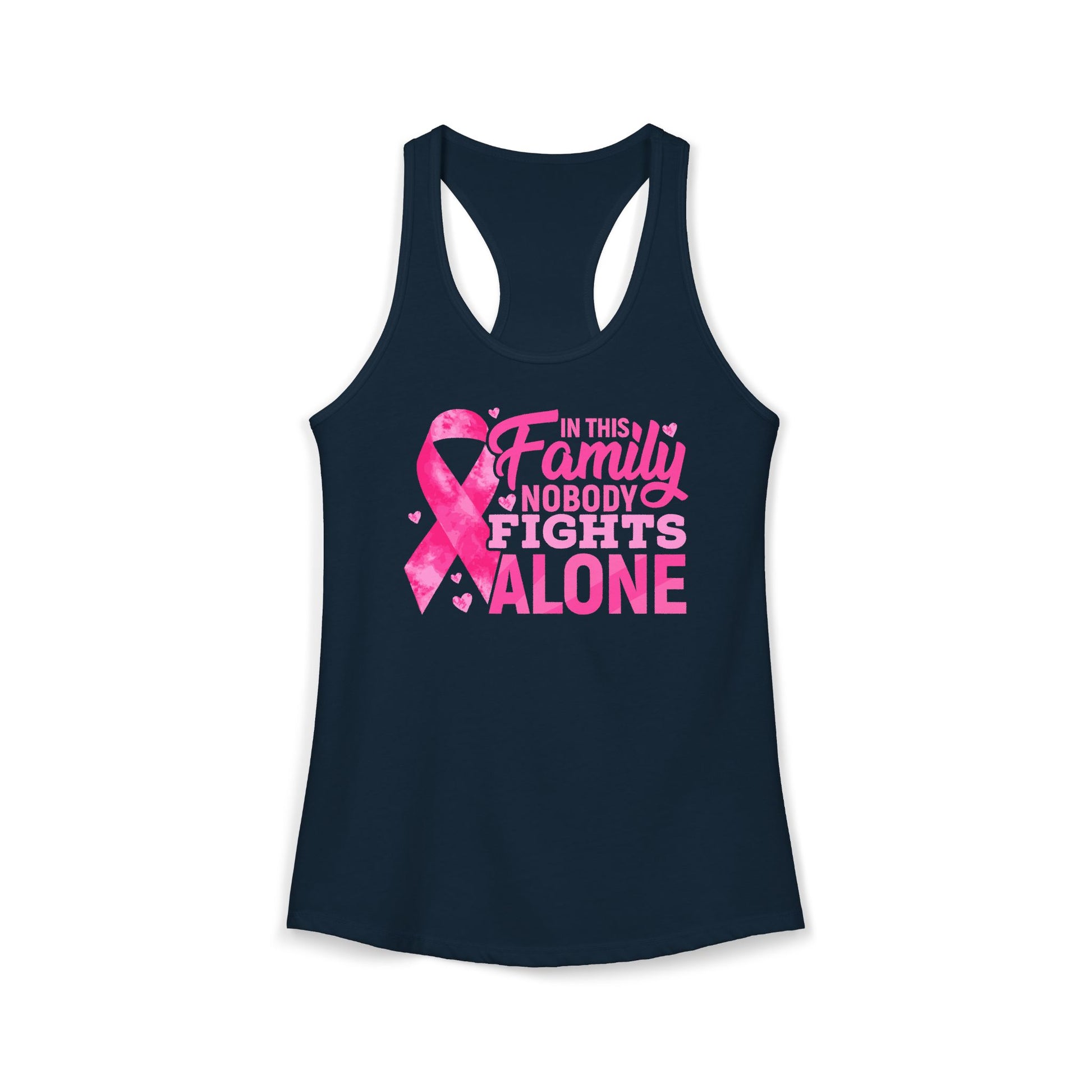 No One Fights Alone" Family Support Tank | Pink Ribbon Cancer Awareness Racerback | Breast Cancer Walk Shirt