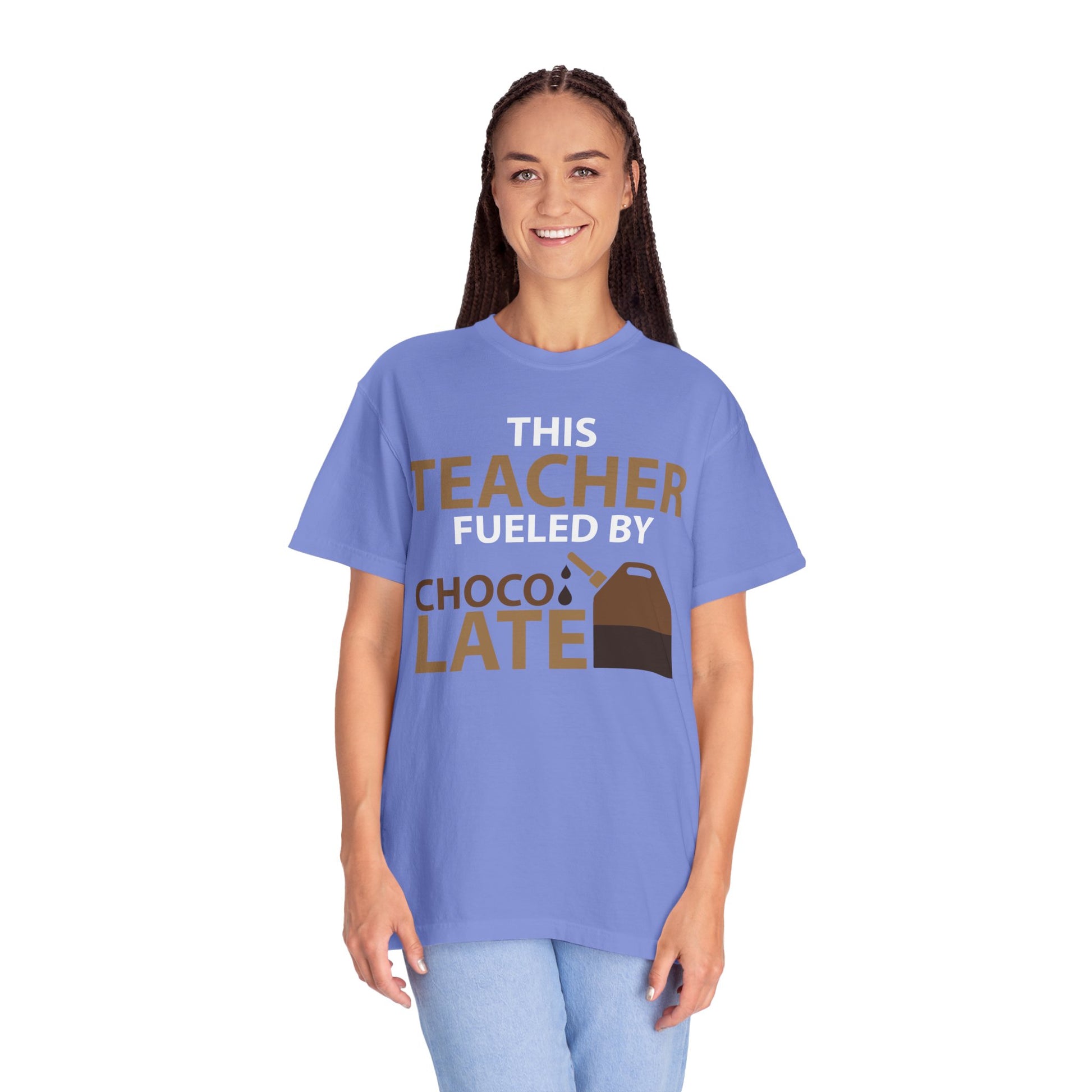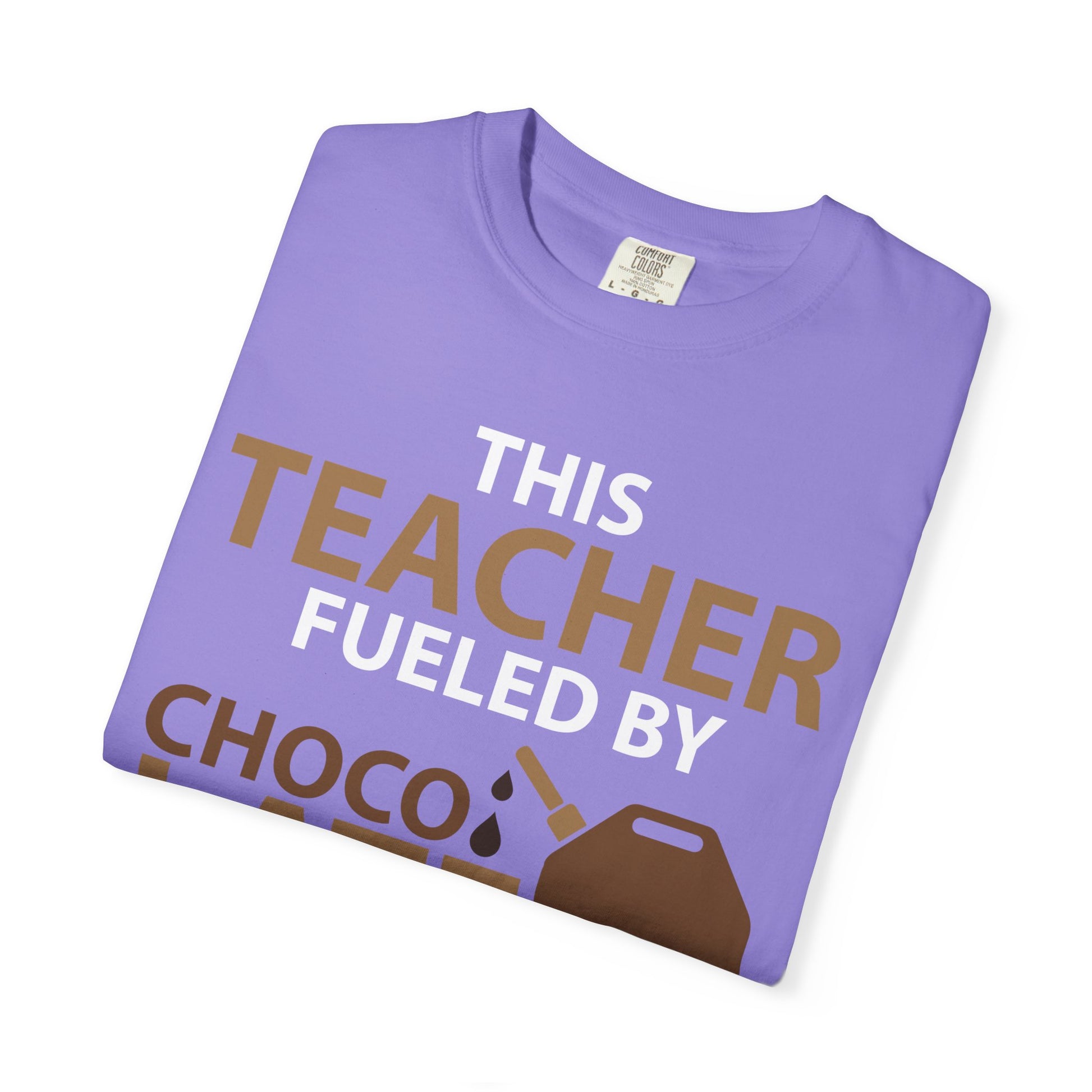 Dive into comfort and humor with our ‘Sweet Indulgence - Teacher’s Chocolate Love Affair T-Shirt’. Crafted for educators with a sweet tooth, this delightful tee captures the essence of those much-needed breaks. Featuring bold typography that proudly proclaims your passion for teaching and chocolate, this shirt is perfect for casual Fridays or after-school lounging. Made from soft fabric that ensures all-day comfort—because we know how demanding your day can be—this shirt is not just apparel; it’s a statement of love for two universal joys: teaching and chocolate!S M L XL 2XL 3XL Width, in 18.25 20.25 22.00 24.00 26.00 27.75 Length, in 26.62 28.00 29.37 30.75 31.62 32.50 Sleeve length from center back, in 16.25 17.75 19.00 20.50 21.75 23.25 Size tolerance, in 1.50 1.50 1.50 1.50 1.50 1.50