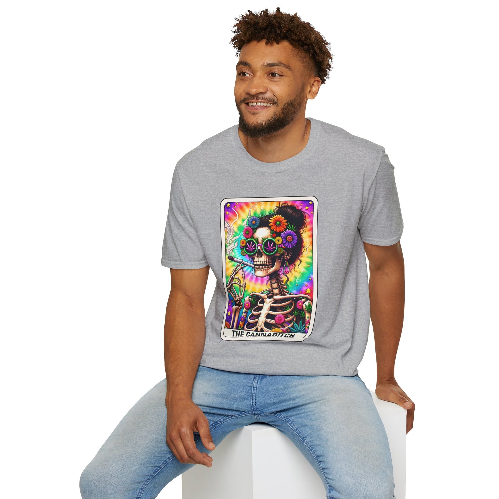 Perfect for Halloween parties, haunted house crawls, or just your everyday spooky aesthetic, this tee is designed to turn heads and raise a few eyebrows. The striking "CANNABITCH" design combines a gothic edge with a playful, cannabis-friendly twist, making it the ultimate statement piece for rebels, stoners, and Halloween lovers alike.