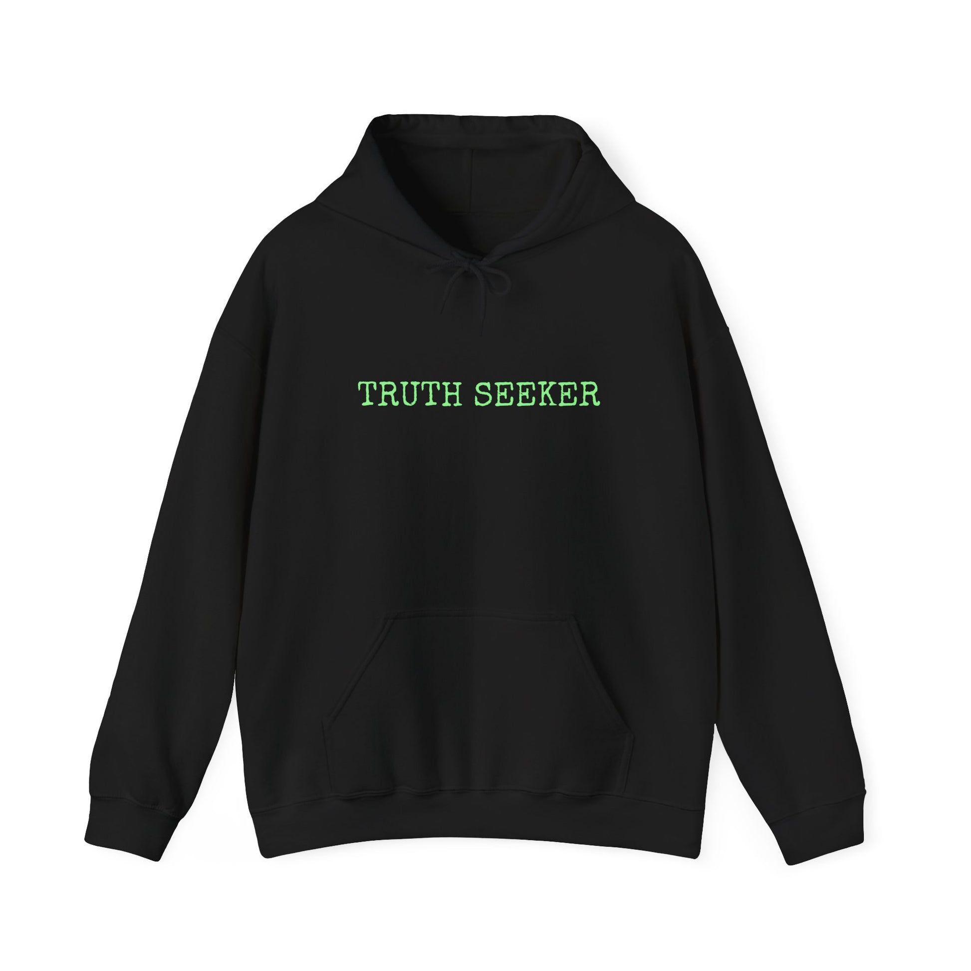 Featuring the iconic "Truth Seeker" text in a minimal green, this hooded sweatshirt is a comfortable, stylish way to show you're part of the club. It's the perfect conspiracy theory gift for a fellow believer, or a treat for yourself.